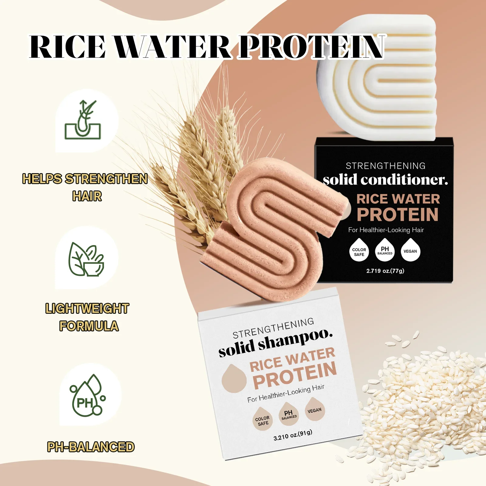 1-3PCS Rijst Shampoo & Conditioner Bar Soild Zeep voor Haargroei Versterking Haar Schoon Roos Voeden hydrateren Haarverzorging - TopDealBox