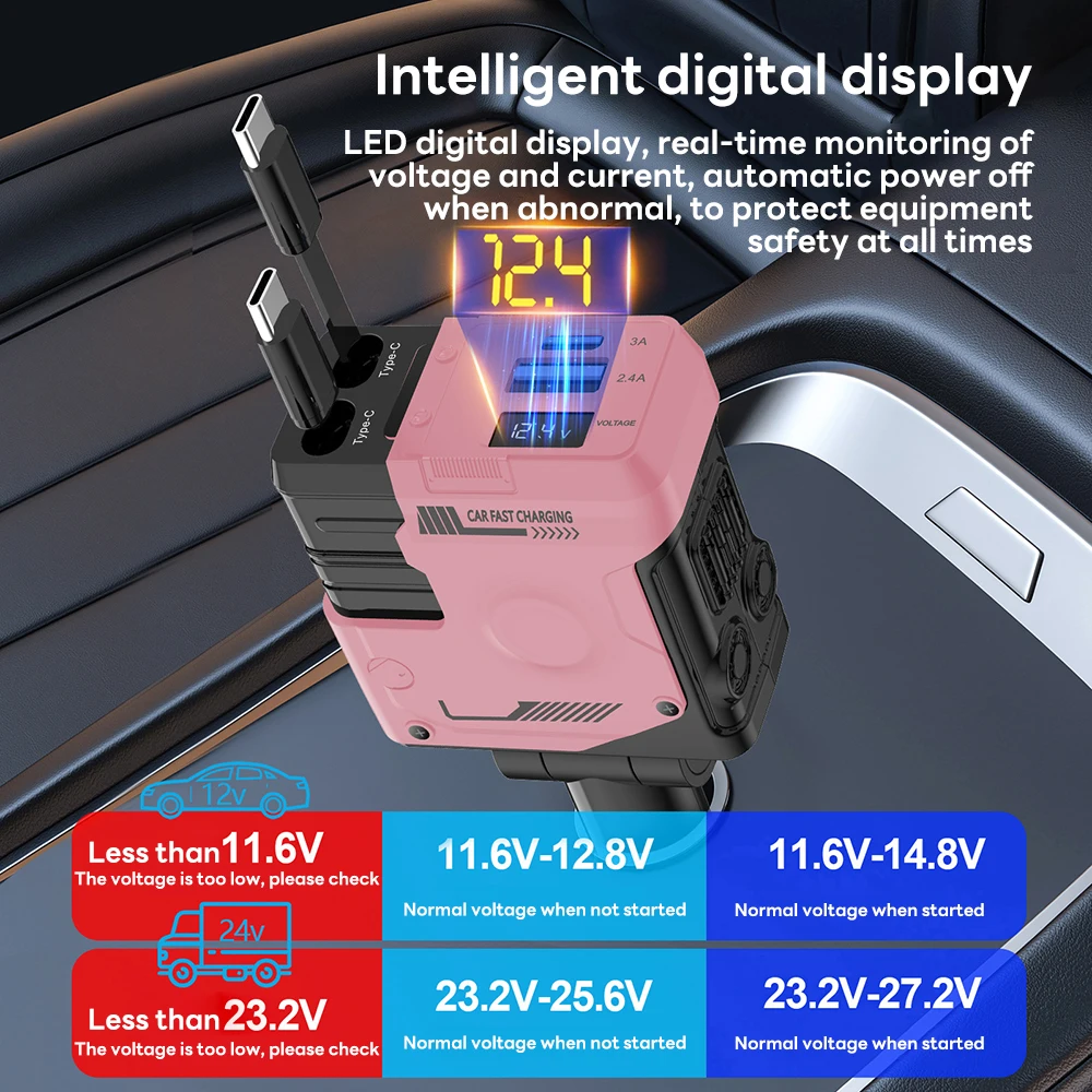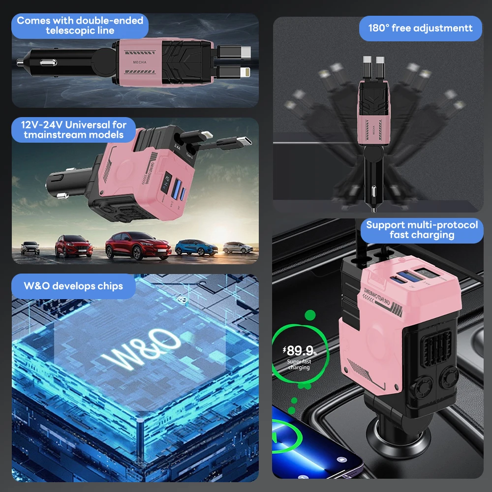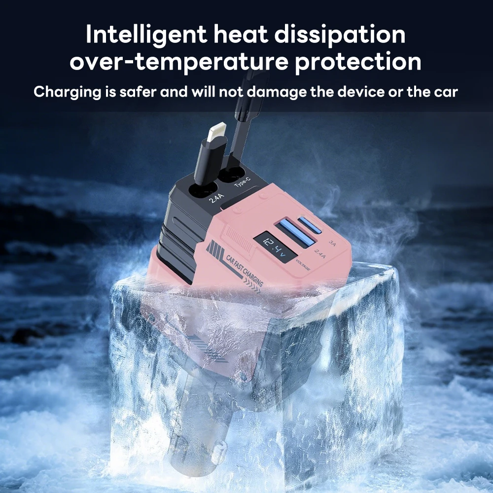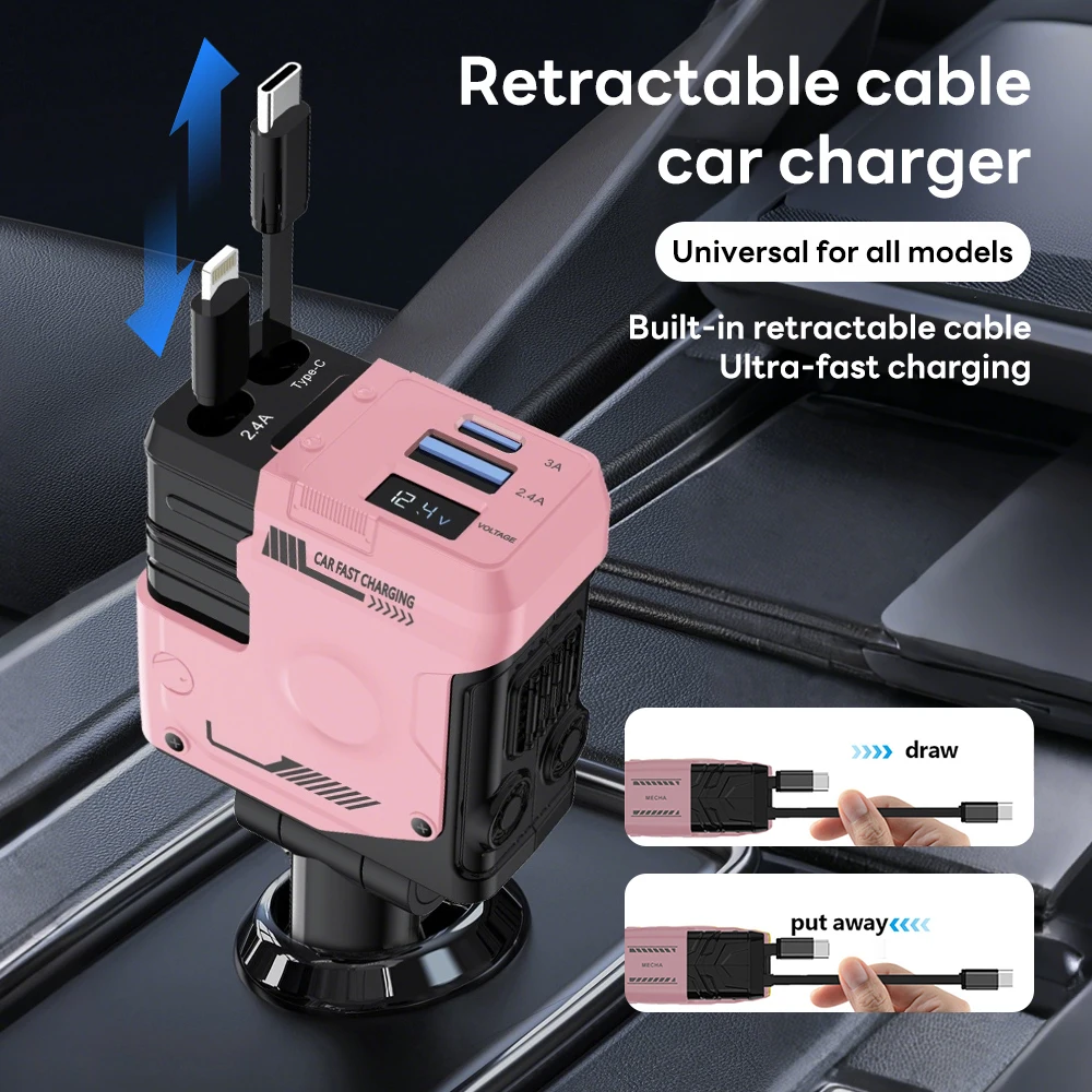 100W 4 IN 1 Intrekbare Autolader Mobiele Telefoon USB PD Type C Kabel Voor iPhone Snel Opladen snoer Sigarettenaansteker QC Adapter - TopDealBox