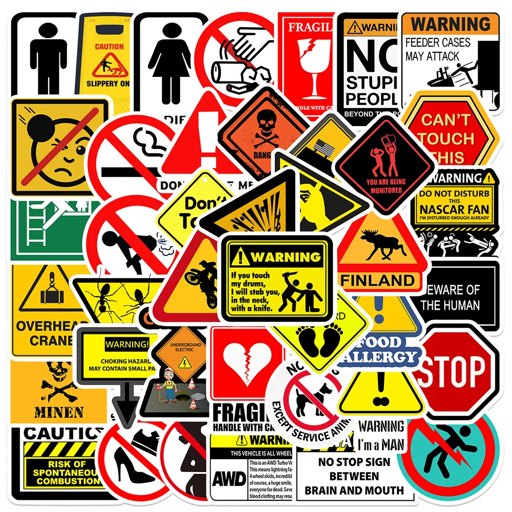 ↑10/30/50PCS Waarschuwingsstickers Gevaar Verbod Skateboard Koelkast Gitaar Laptop Motorfiets Reizen Klassiek Speelgoed Cool Decals sticker - TopDealBox