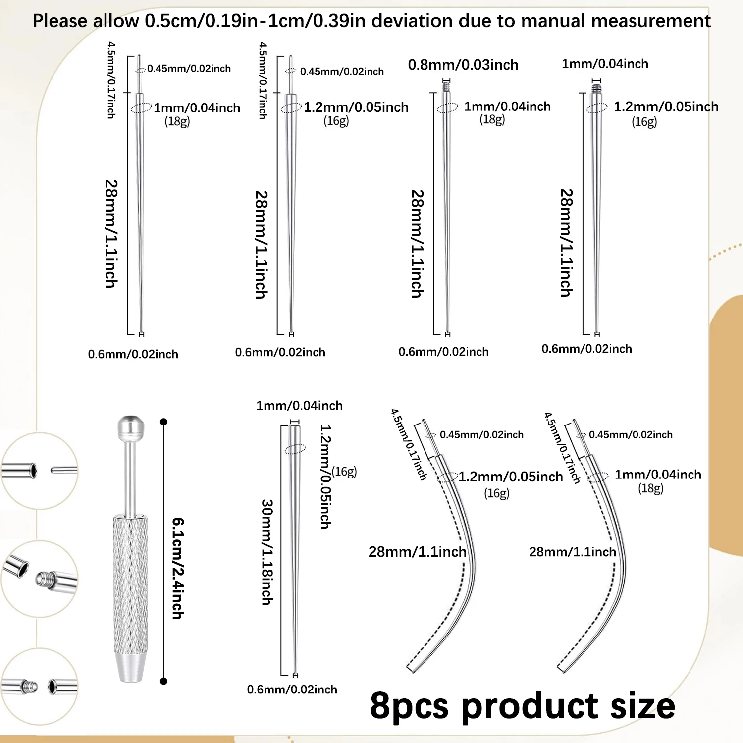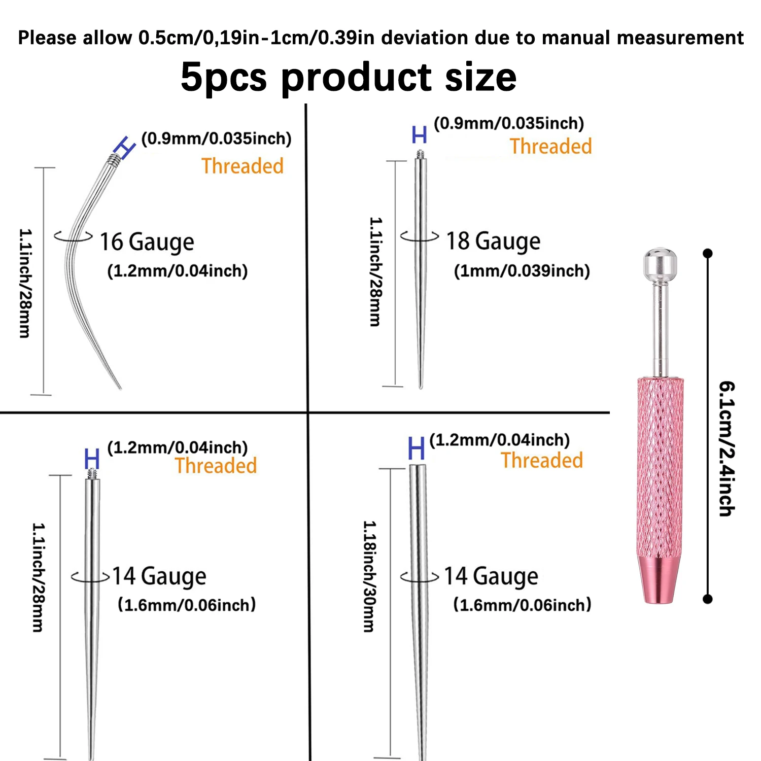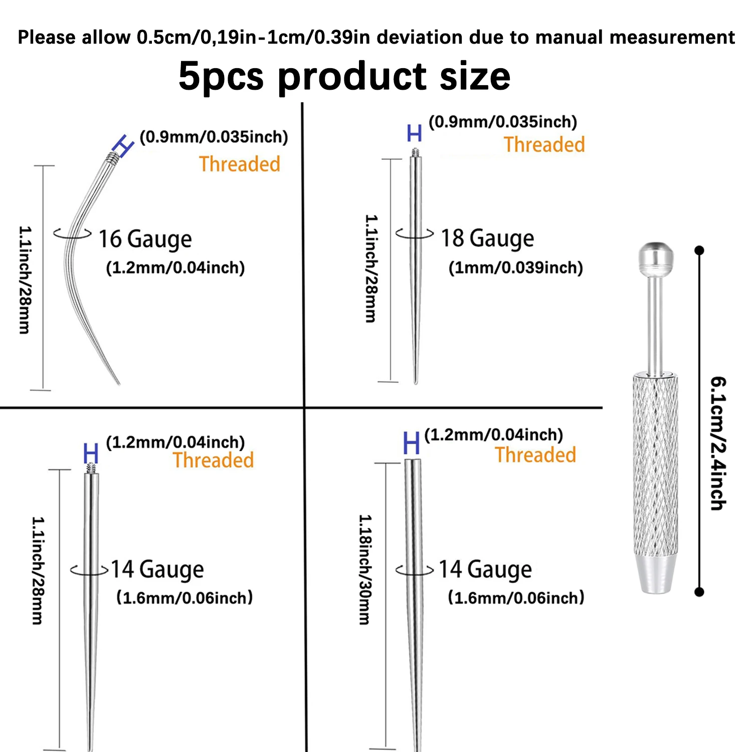 ↑14/16/18G Titanium Gebogen Taper Inbrengen Pin Tool Interne Draad Piercing Kit Voor Tragus Helix lip Neus Piercing Sieraden - TopDealBox