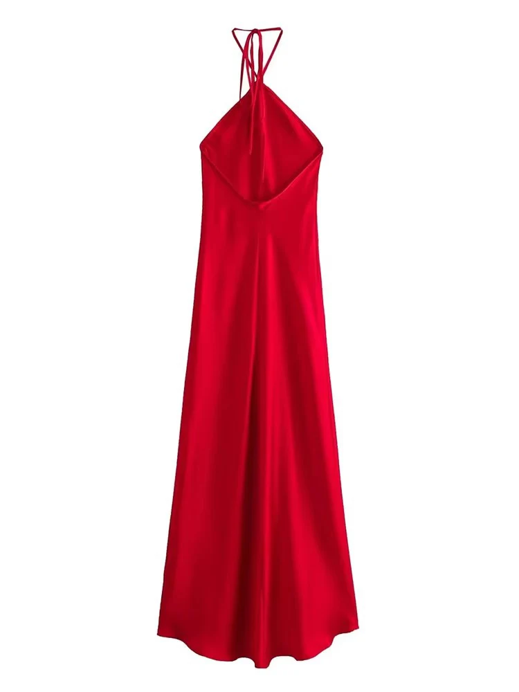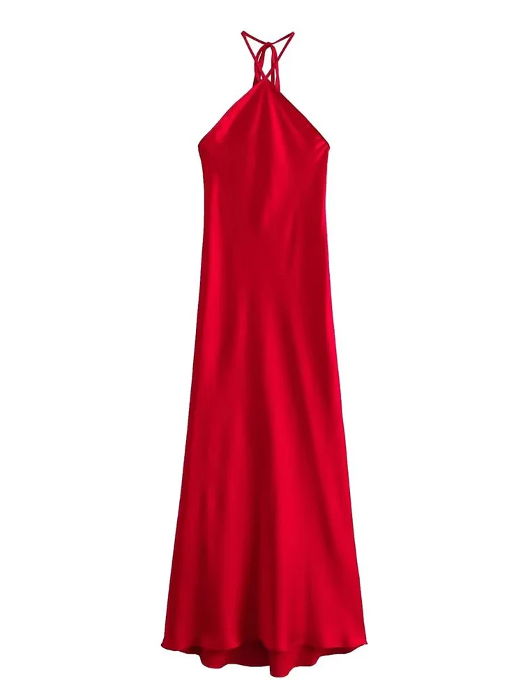 ↑2024 Halter Lange Jurken voor Vrouwen Backless Satijnen Jurk Vrouw Off Schouder Sexy Midi Jurken Elegante Avond Feestjurk - TopDealBox