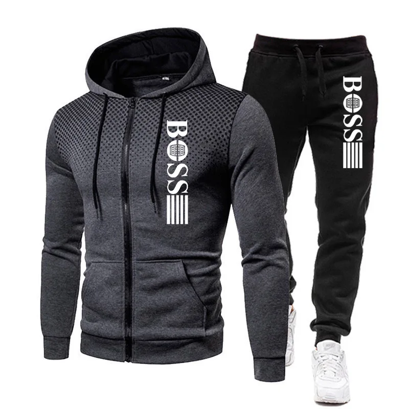↑2025 Nieuwe herenhoodie met ritssluiting + casual broekset voor herfst- en wintermode Fitness en warme sportkleding Tweedelige set - TopDealBox
