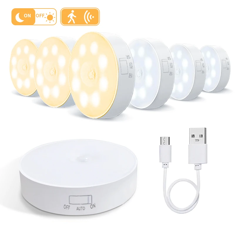 ↑3 STKS LED Menselijke bewegingssensor Verlichting Slaapkamer Nachtlampje Trap Gang Kamer Garderobe Verlichting Kamer Decor Lamp USB Oplaadbaar - TopDealBox