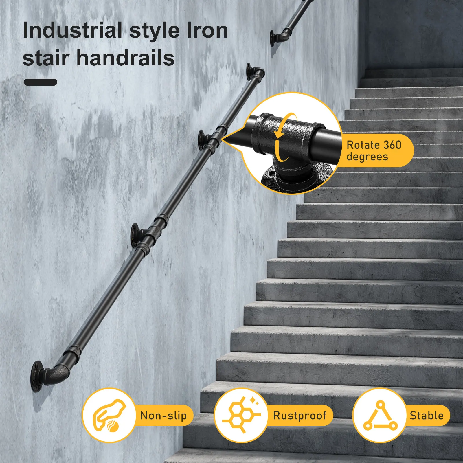 ♡Snel bekijken3,66 m/12 ft wandgemonteerde pijpleuning, metalen trapleuning, stevig, zwart36.39 EUREUR 987.58Hot★★★★★5.0
