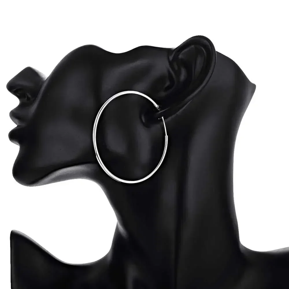 ↑925 Zilveren Ronde Cirkel 35/50/60Mm Oorringen Voor Vrouw Bruiloft Verlovingsfeest Mode Charme Sieraden Cadeau - TopDealBox