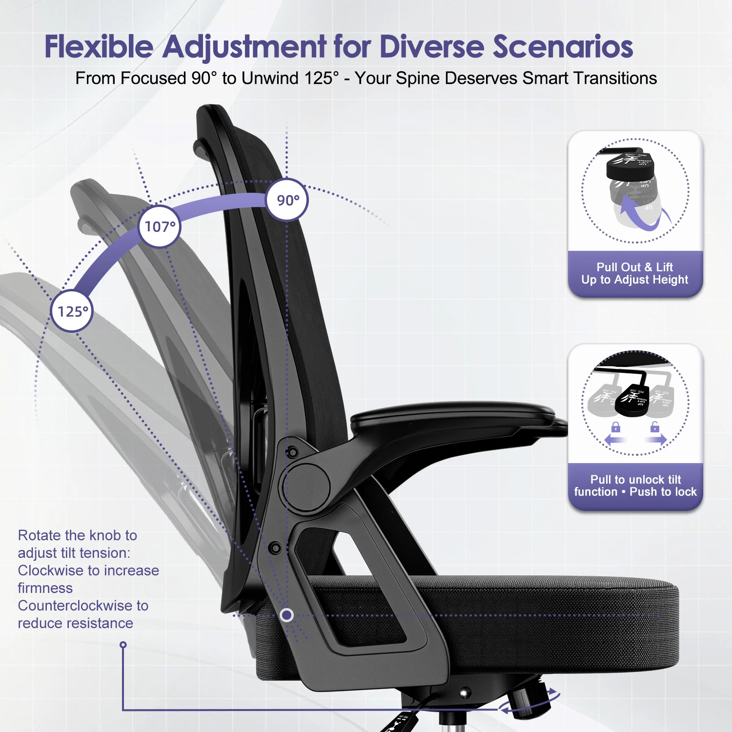 β‘Snel bekijkenAUTHMIC Ergonomische bureaustoel -135 Β° Leun- en in hoogte verstelbare zitting, opvouwbare armen, verstelbare hoofdsteun, thuiskantoorstoel96.99 EUREUR 1397.90Hotβ β β β β 5.0