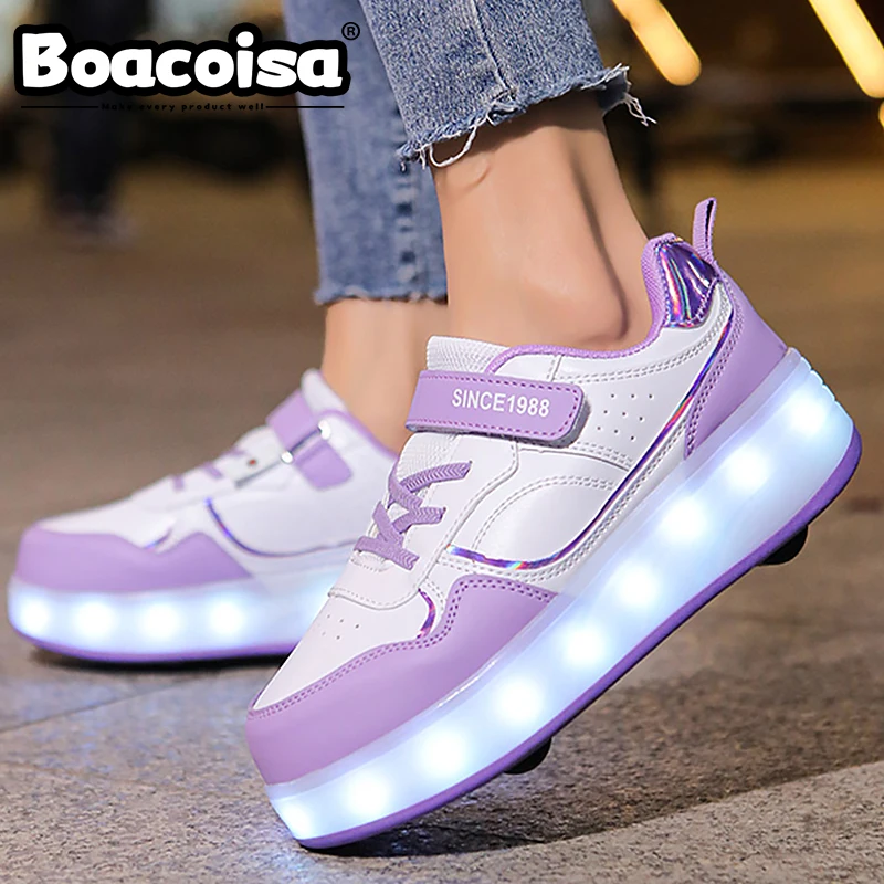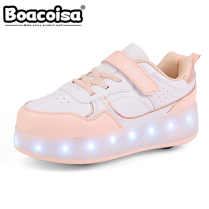 ↑Boacoisa 4-wiel rolschaatsschoenen voor meisjes Kinderen Knipperlicht Sport LED-licht Lichtgevende sneakers Outdoor Casual kinderen Jongens - TopDealBox