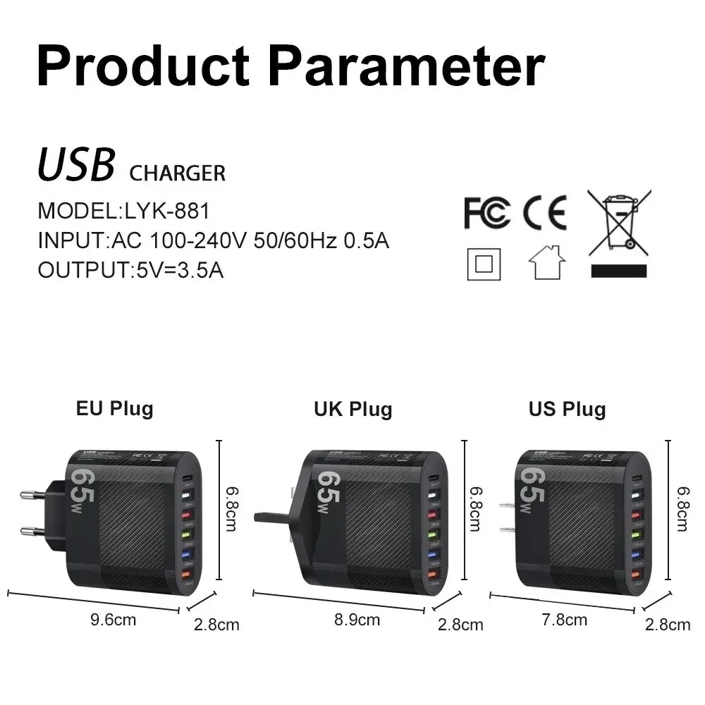 β‘Snel bekijken120W multipoort USB-oplader Type C snellaadstroomadapter voor iPhone Samsung Xiaomi telefoon snel opladen EU / US-stekker wandoplader2.59 EUREUR 41.61Hotβ β β β β β 4.9