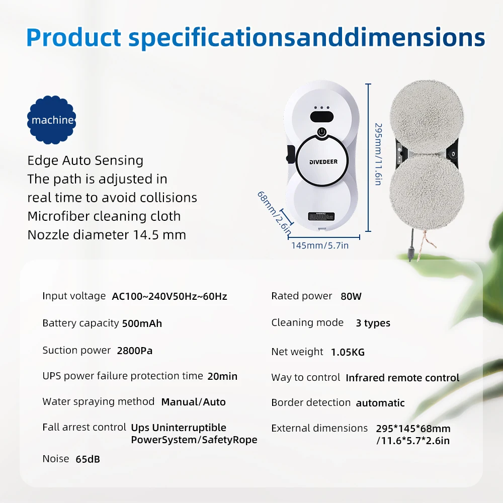 β‘Snel bekijkenDIVEDEER Wit/Zwart Huis Automatisch Geen spray of waternevel Raamreinigingsrobot Intelligent veeg Hoogbouw raam met groot oppervlak49.39 EUREUR 1305.14Hotβ β β β β β 4.8