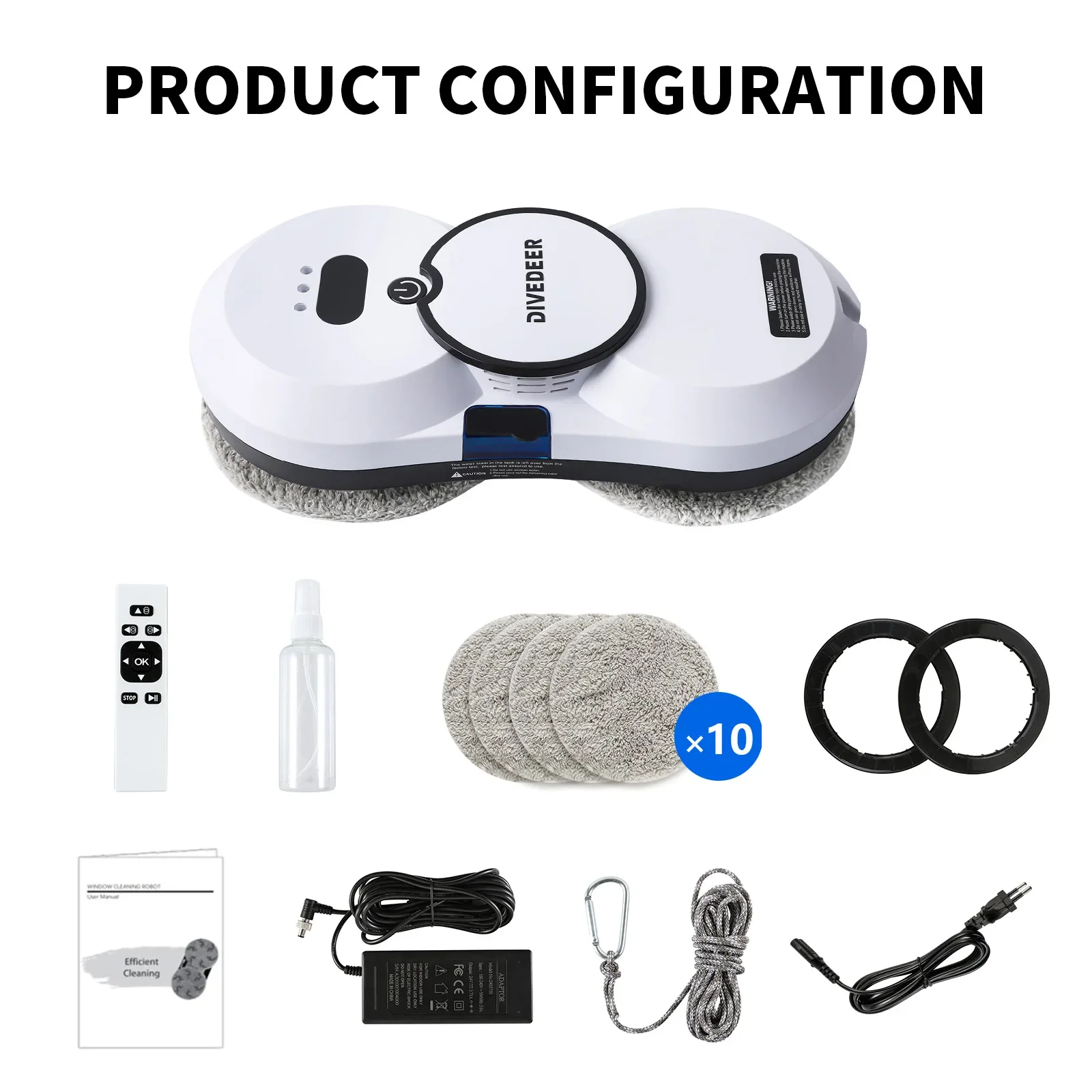 DIVEDEER Raamreinigingsrobot Grote zuigspray Elektrische anti-val stofzuiger met afstandsbediening - TopDealBox