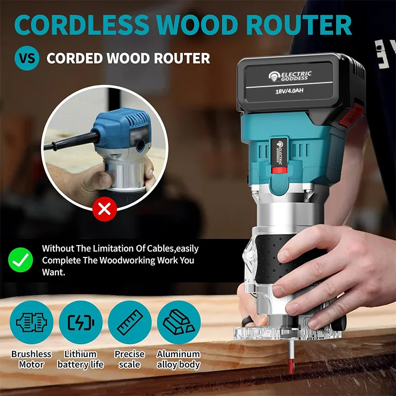 ↑Elektrische Godin Borstelloze Elektrische Handtrimmer Draadloze Hout Router Houtbewerking Graveren Steken Tool voor Makita 18V Batterij - TopDealBox