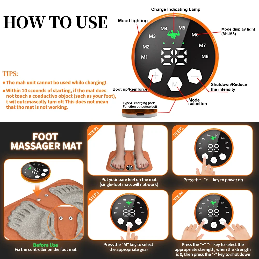 ↑F Afstandsbediening Voeten Massager 3D Smart Voetmassage Pad R8 Modi 29 Niveaus Voet Ontspannen Spieren Slanke Benen Voetmassage Pad - TopDealBox