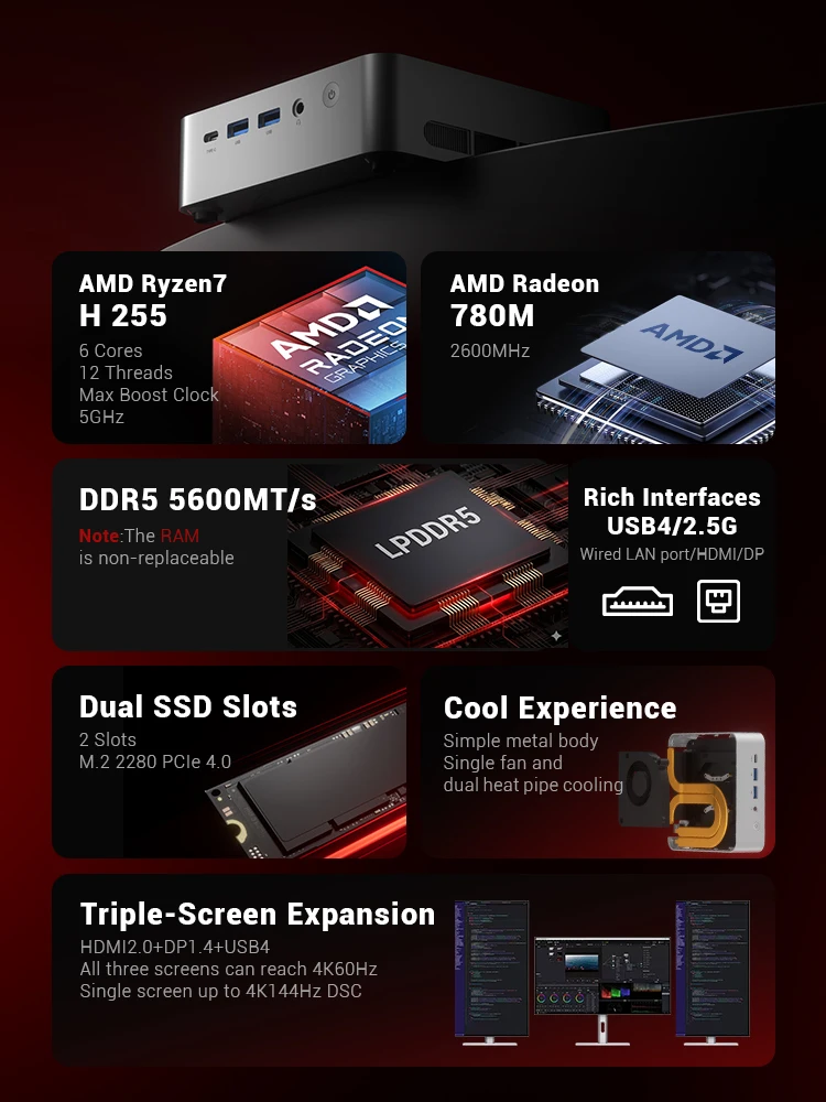β‘Snel bekijkenCHUWI UBox Mini PC AMD Ryzen 5 6600H 16GB DDR5 512GB SSD Windows 11 Pro 4K 144Hz Decording WiFi 6 BT 5.2 Extend M.2 1T*2 650g 128*130.5*57(H)mm266.96 EUREUR 623.39Hotβ β β β β β 4.9