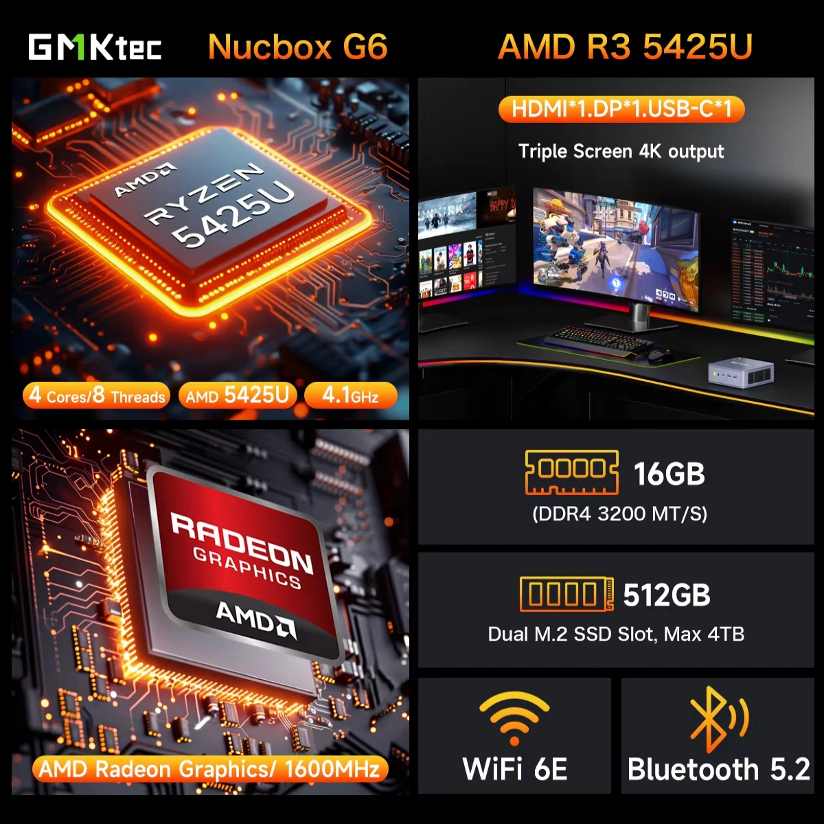 β‘Snel bekijkenGMKtec M6 Ultra Mini PC AMD Ryzen5 7640HS Desktop Computer 16GB RAM 512GB PCIe3.0 SSD Windows 11 Pro Micro PC met Dual 2.5G LAN520.69 EUREUR 12698.48Hotβ β β β β β 4.8