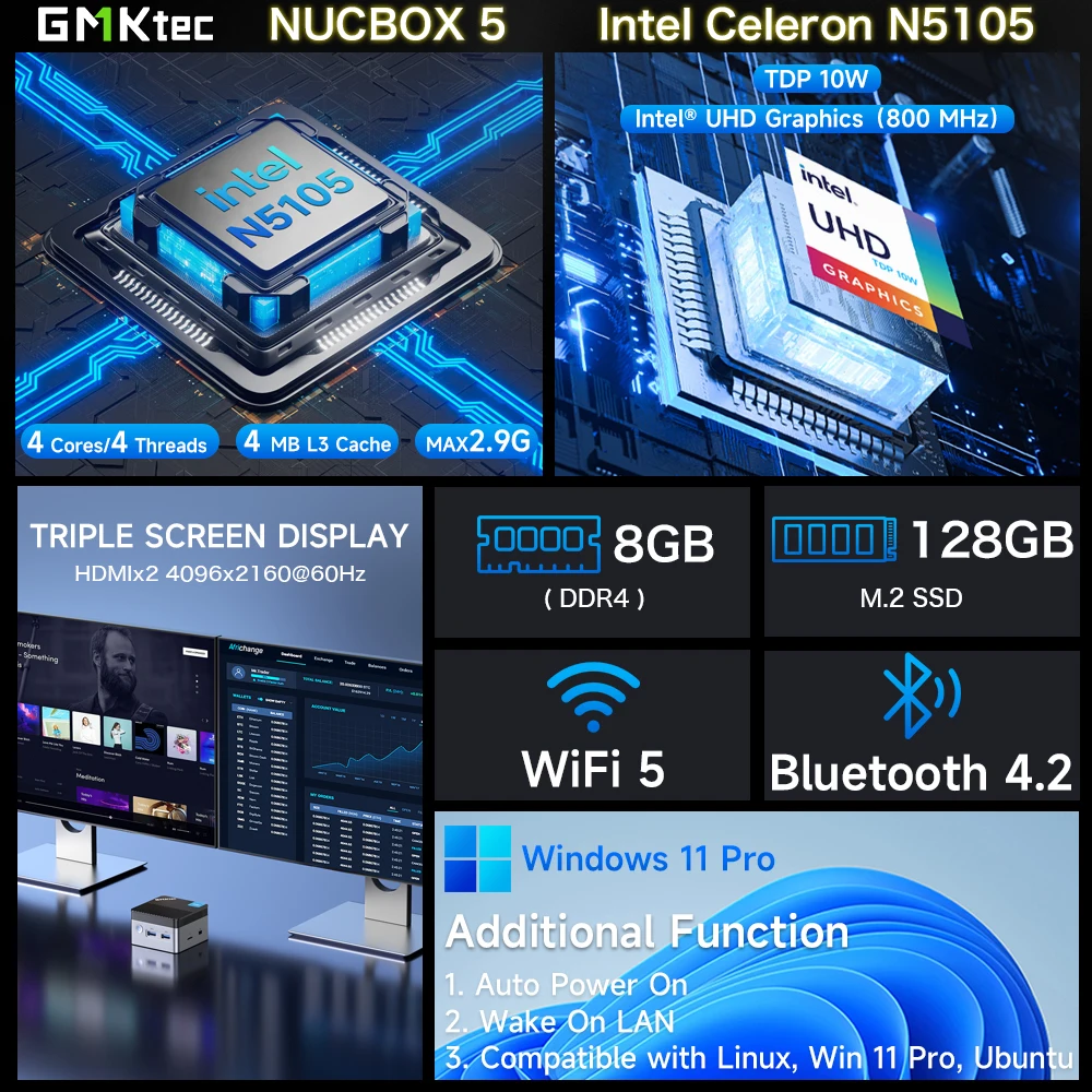 β‘Snel bekijkenGMKtec G3 AL Mini PC Intel Celeron 5205U Windows 11 Pro 8GB RAM 256GB ROM Dual HDMI Desktop Mini Computer WiFi 5 BT4.296.69 EUREUR 2426.18Hotβ β β β β 5.0