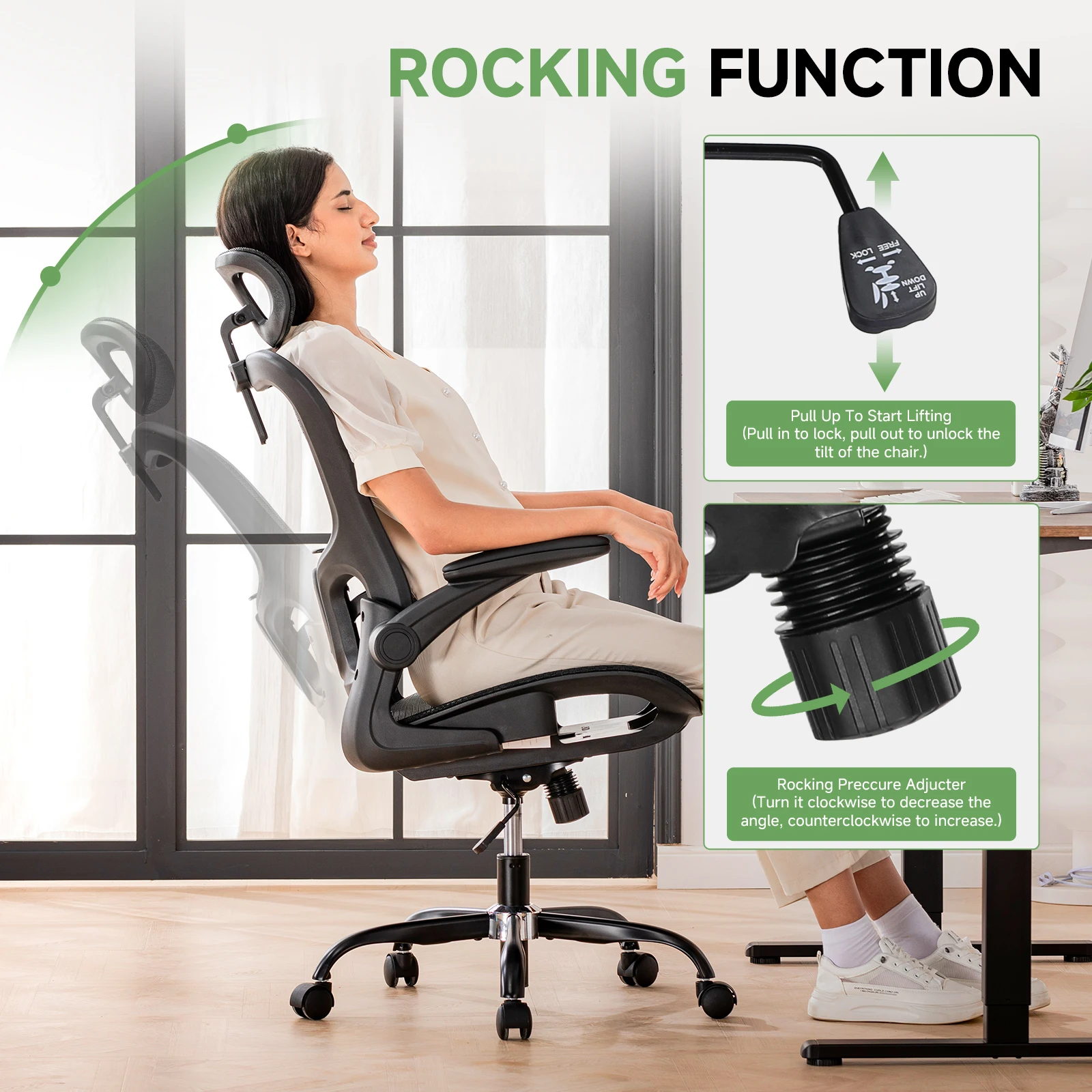 β‘Snel bekijkenJHK Ergonomische Liggende Hoge Rug Mesh Woonkamer Schommelstoel Gaming Stoel Computer Bureau Draaibaar Rollend Lendensteun Kussen93.39 EUREUR 223.31Hotβ β β β β β 4.9