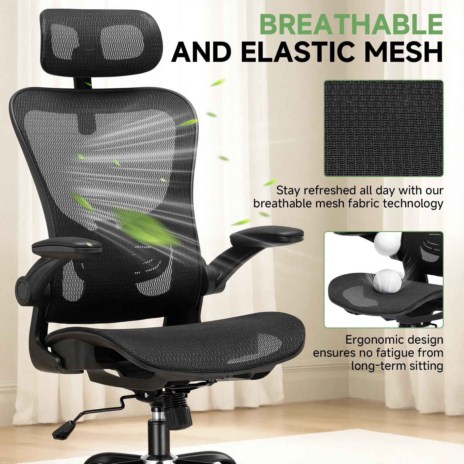 β‘Snel bekijkenNaspaluro Ergonomische bureaustoel, bureaustoel met opklapbare armleuningen, in hoogte verstelbare, ademende rugleuning, draaistoel 360Β° Β°54.28 EUREUR 134.70Hotβ β β β β β 4.9