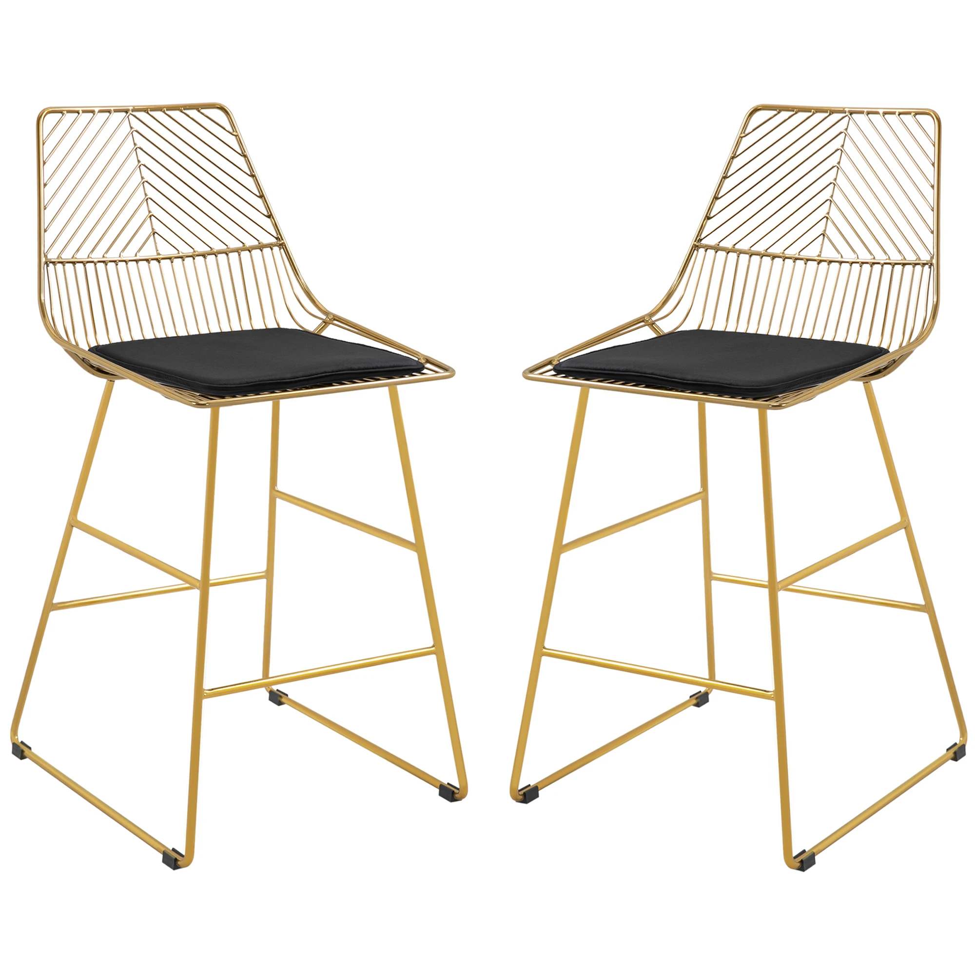 HOMCOM Set van 2 barkrukken, bistrokrukken met voetsteun, kussen, goud, 46x56x95 cm - TopDealBox