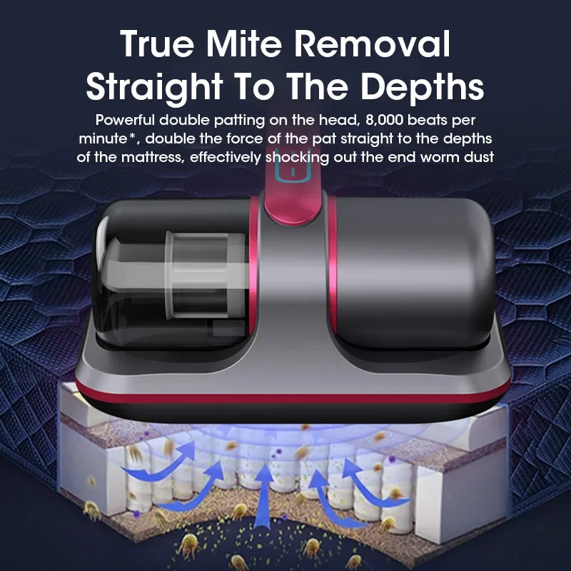 ↑Huishoudelijke Matras Stofzuiger 12kpa Uv Sterilisatie Machine Usb Opladen Kleine Draagbare Draadloze Mijtverwijderaar - TopDealBox