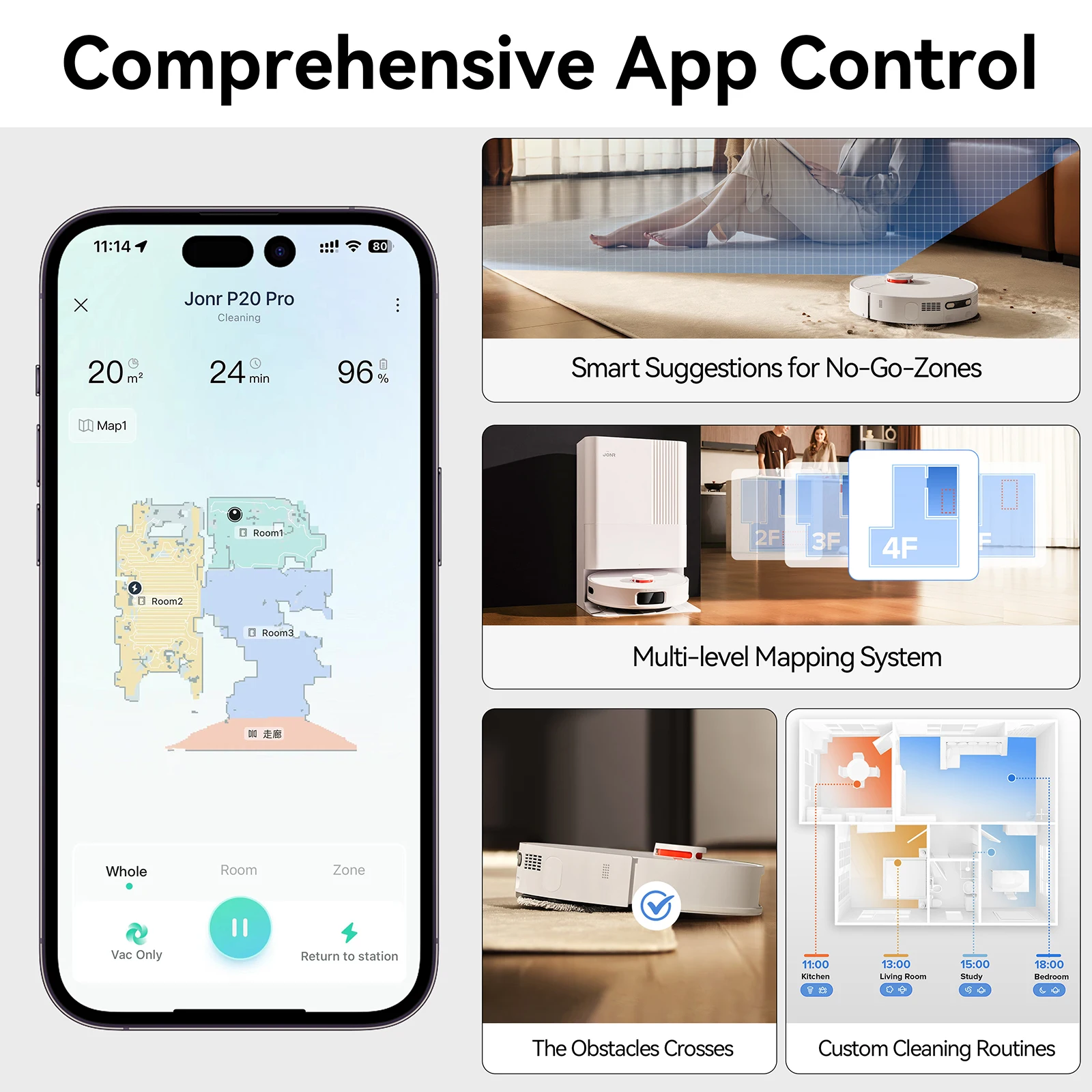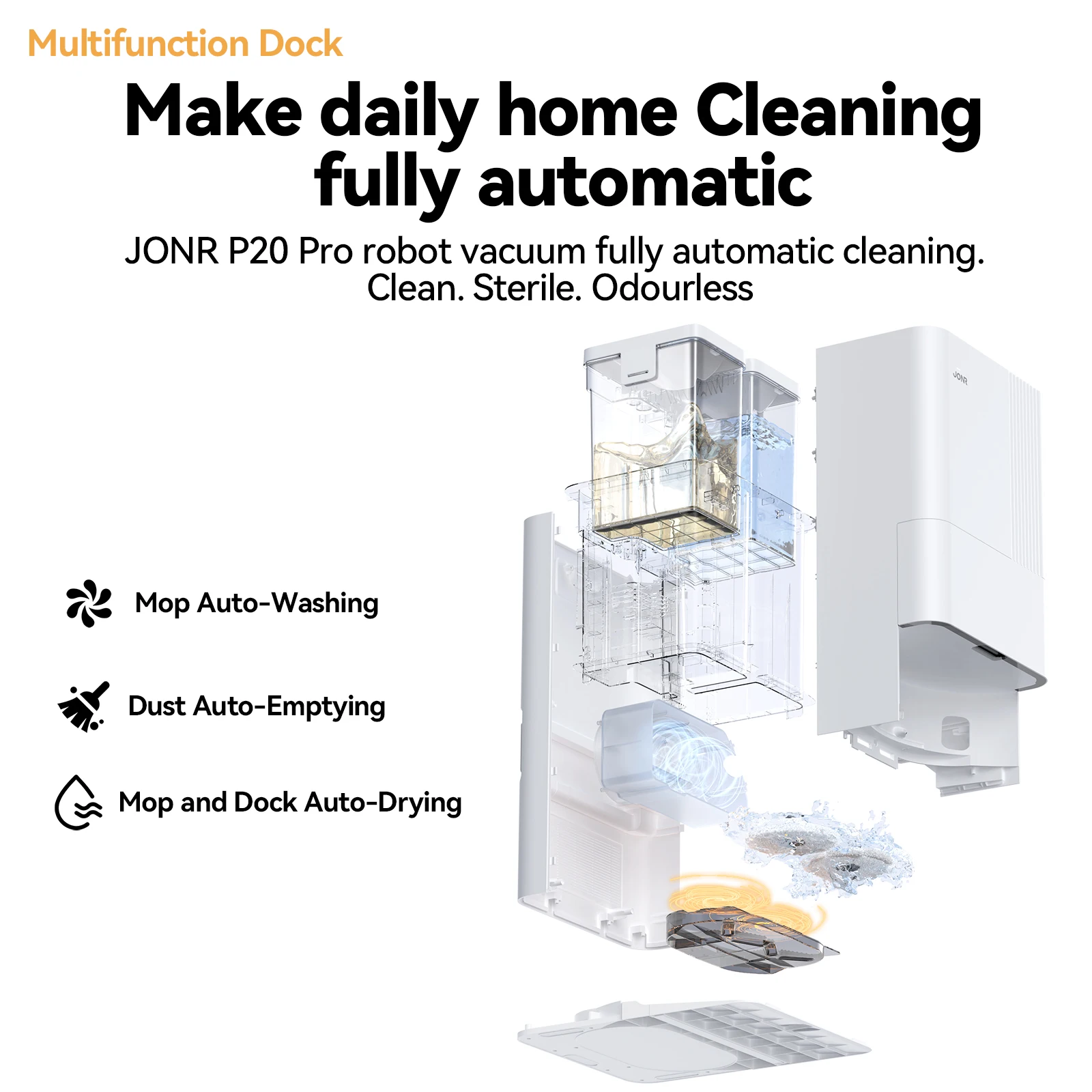 JONR P20 Pro robotstofzuiger met dweilfunctie en hefmop, 8000 Pa alles-in-één reinigingsstation, randreiniging, hete luchtdroog - TopDealBox