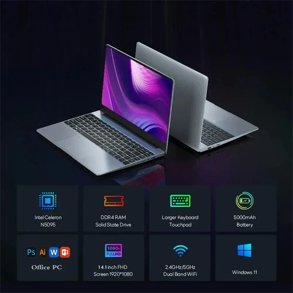 Kantoor Studiecomputer 14.1 ''Laptopcomputer Intel celeron N5095A 16GB DDR4 1TB SSD Video Gaming Laptop Windows 11 Pro Draagbaar | Beste Prijs at TopDealBox