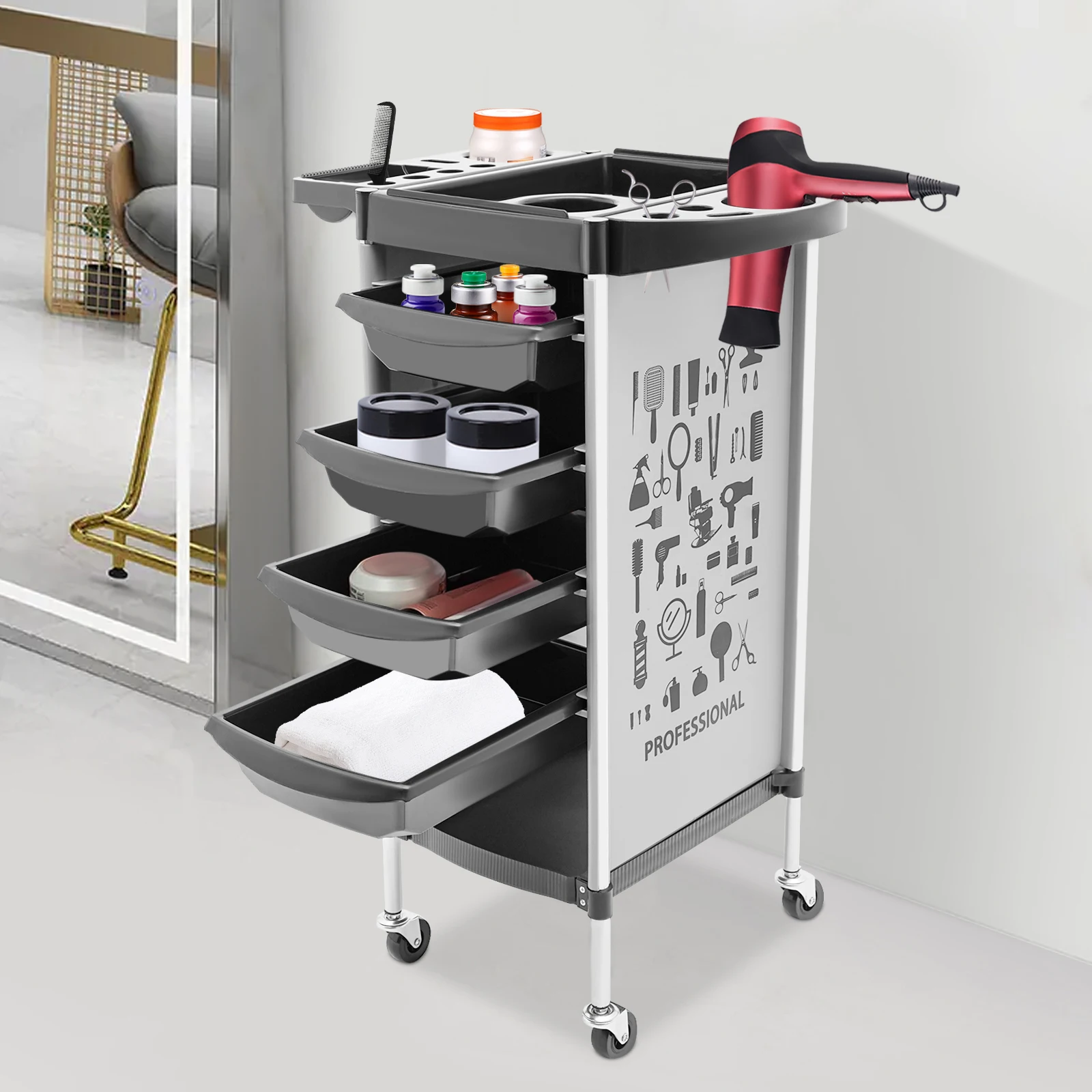 ♡Snel bekijkenKappers Schoonheidssalonwagen met 5 laden Trolley met grote capaciteit Multifunctionele platformwielen Flexibele beweging38.39 EUREUR 561.28Hot★★★★★5.0