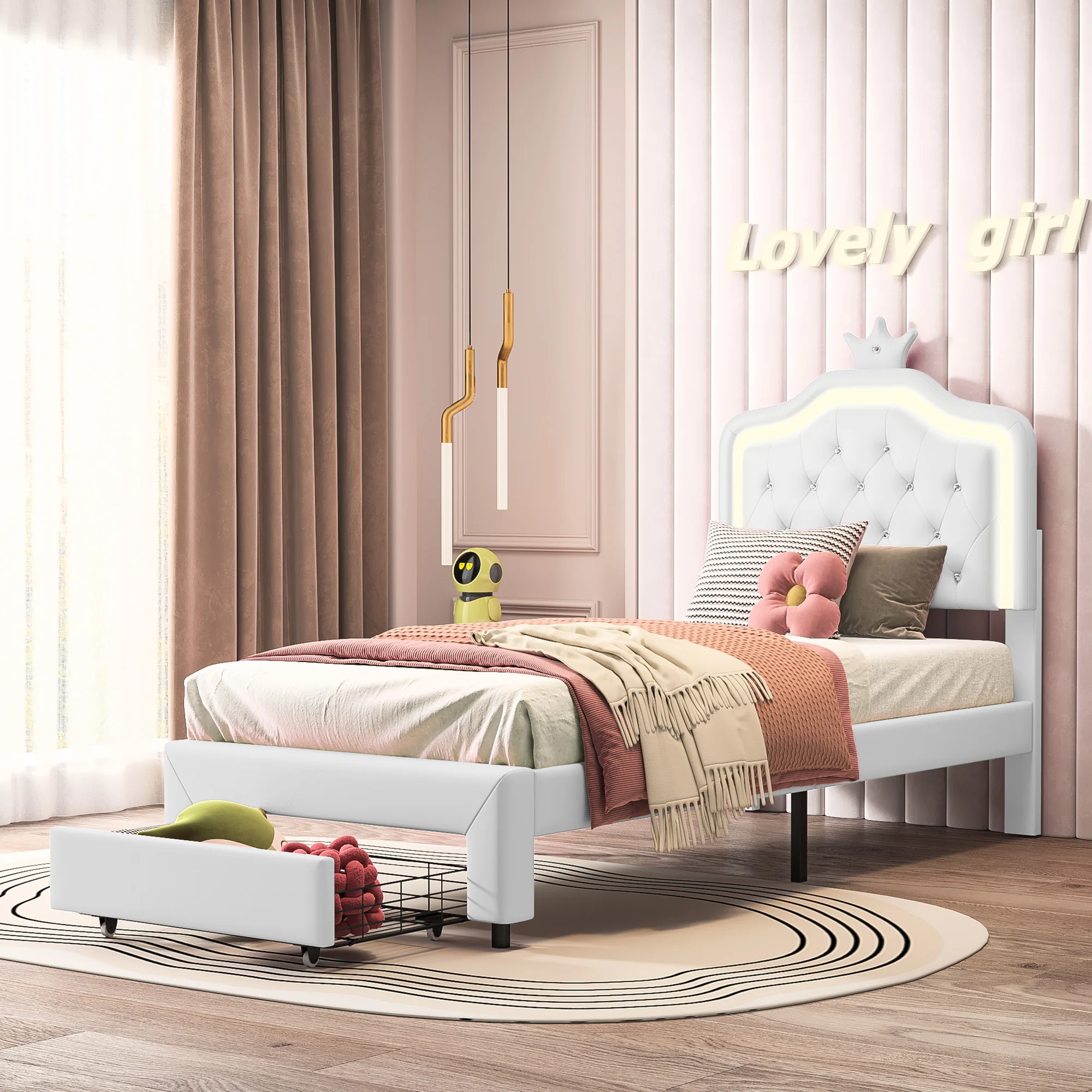 β‘Snel bekijkenRosahqnda Kinderbed Eenpersoonsbed 90/140x200cm Meisjesbed met LED-verlichting, Crown Shell Hoofdbord Eenpersoonsbed Rust Zonder Matras162.02 EUREUR 402.04Hotβ β β β β β 4.9