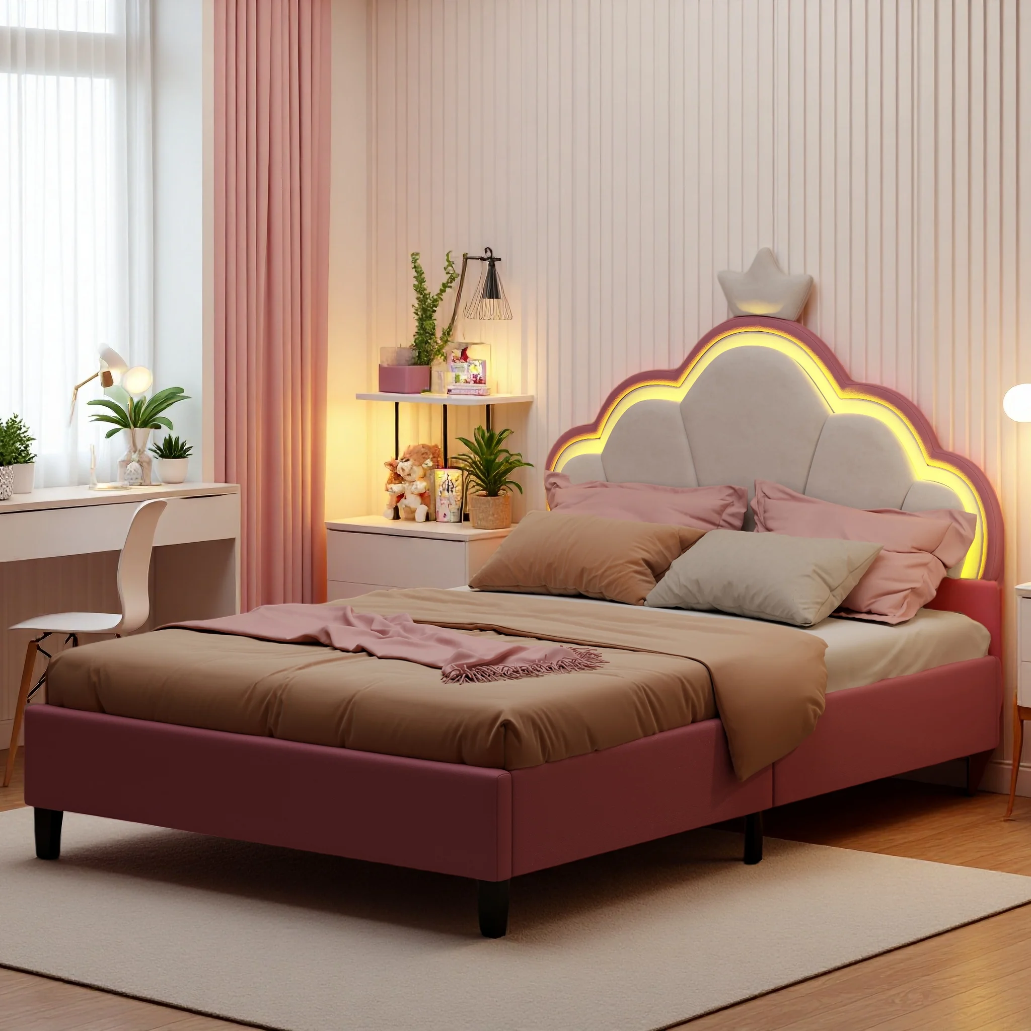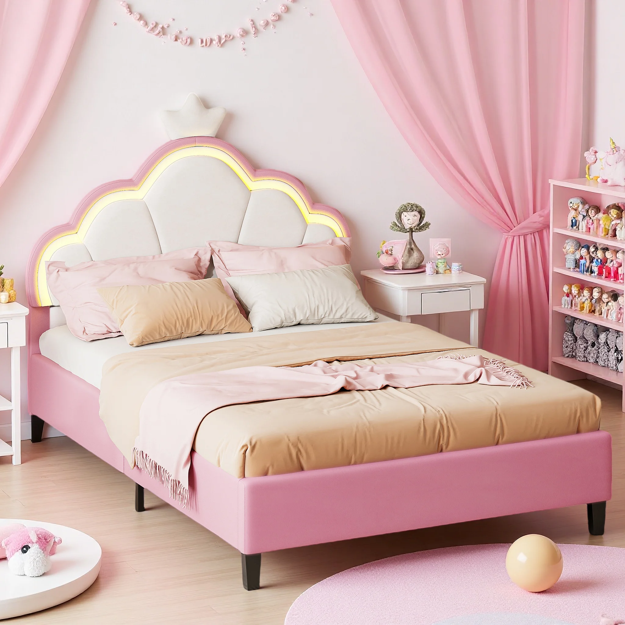 β‘Snel bekijkenRosahqnda Kinderbed Eenpersoonsbed 90/140x200cm Meisjesbed met LED-verlichting, Crown Shell Hoofdbord Eenpersoonsbed Rust Zonder Matras162.02 EUREUR 402.04Hotβ β β β β β 4.9