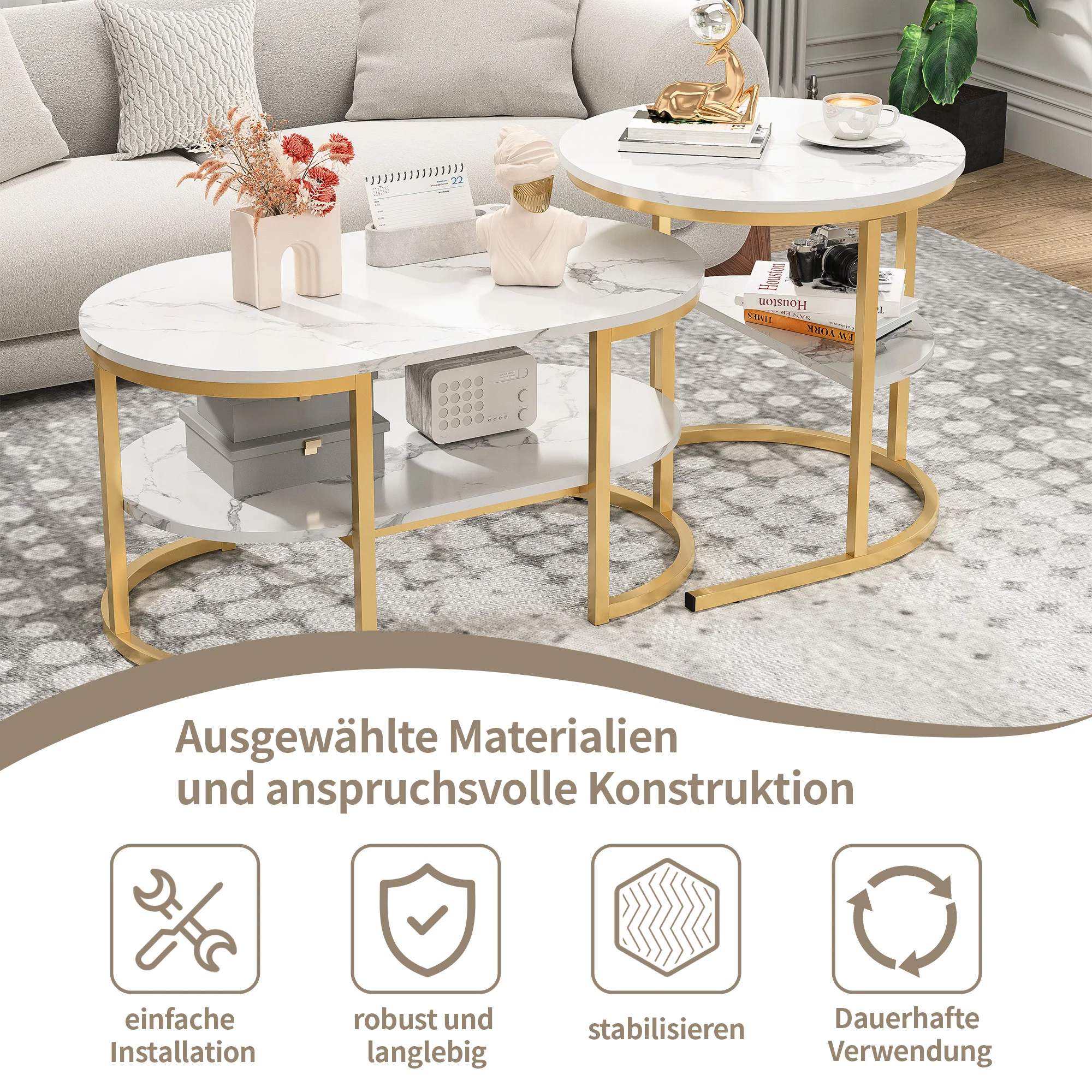 β‘Snel bekijkenLazyspace salontafelset van 2, moderne woonkamertafel met marmeren fineer, met opbergruimte, voor woonkamer, metalen frame112.99 EUREUR 226.48Hot