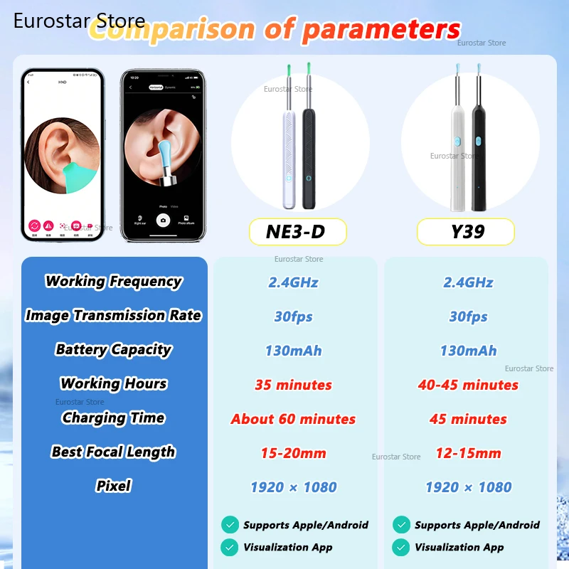 Limpiador Visual de cera de oídos con cámara, endoscopio seguro para eliminación de cera de oídos con cámara de 5M, otoscopio luminoso, herramientas de limpieza de oídos, cuidado de los oídos - TopDealBox