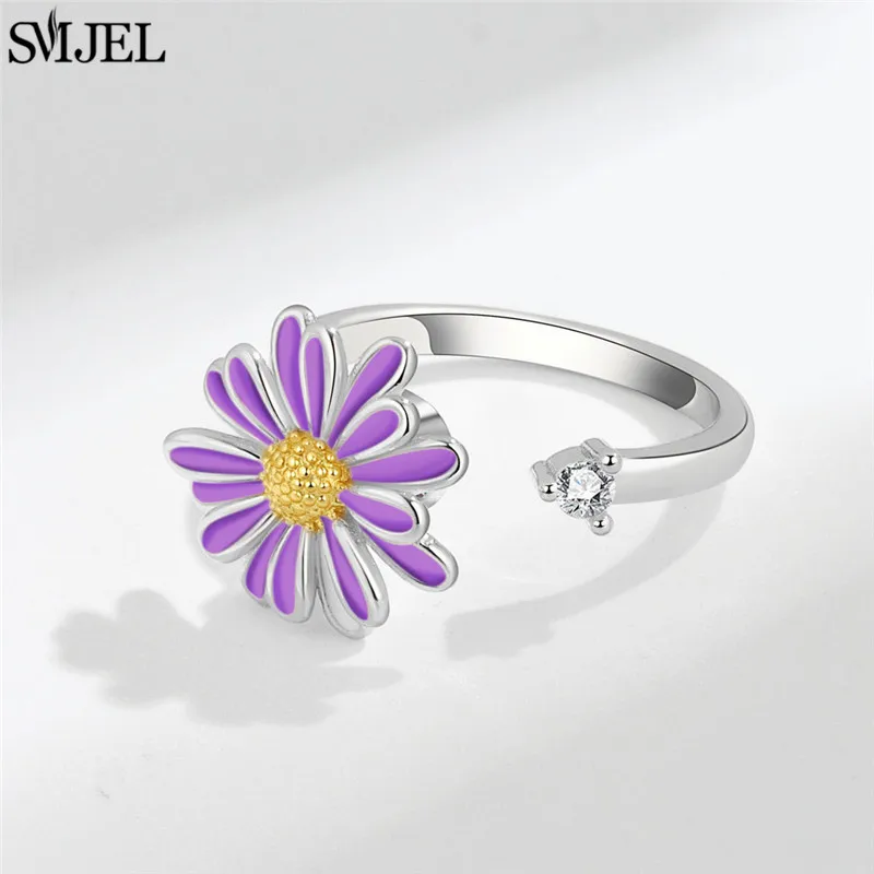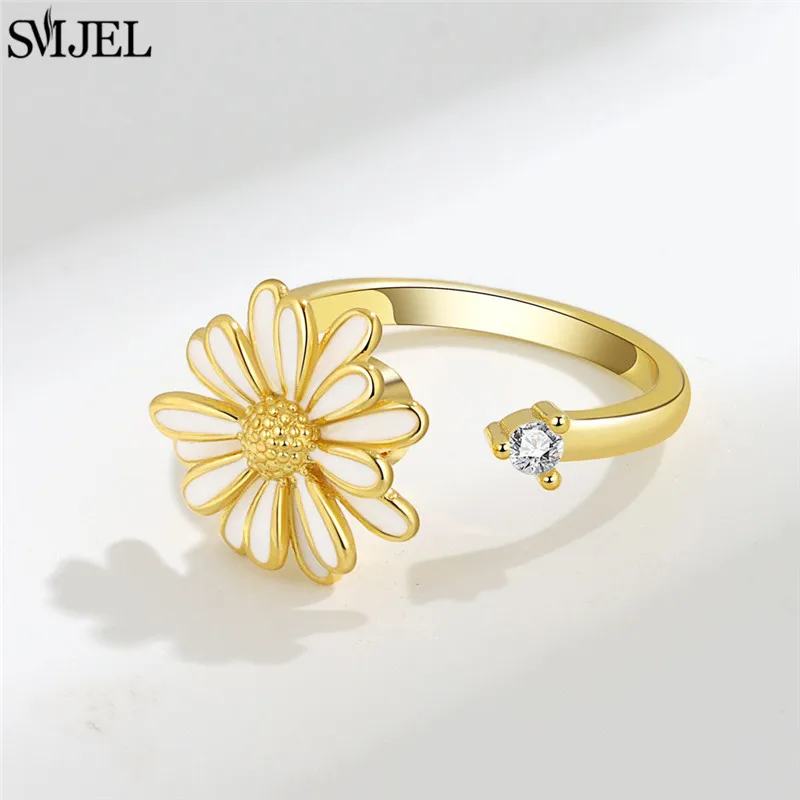 ↑Luxe Kristallen Vlinder Angst Ring Fidget Spinner Ringen voor Vrouwen Mode Dragonfly Zonnebloem Ring Roterende Vrij Sieraden - TopDealBox