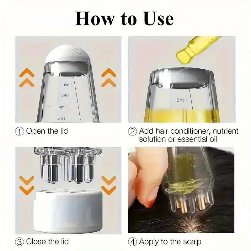 ↑Mini Draagbare Hoofdhuid Applicator Vloeibare Kam Haarwortel Rollende Massage Medicinale Kam Haar Met Essence Olie Om De Hoofdhuid Te Voeden - TopDealBox