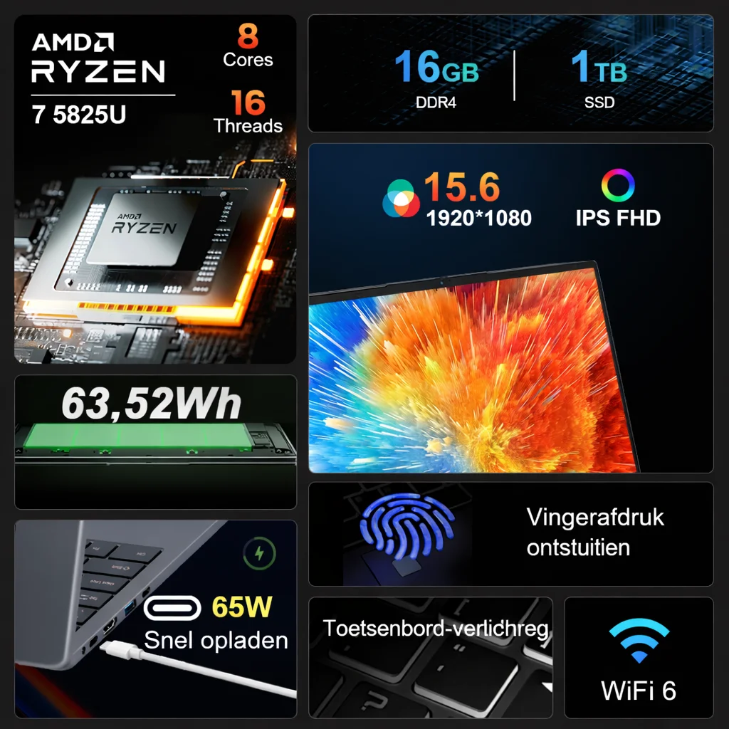 ↑Ninkear A15 plus 15,6 inch FHD IPS scherm laptop AMD Ryzen 7 5825U 16GB DDR4 1TB SSD WiFi 6 Windows 11 Pro Office Notebook - TopDealBox