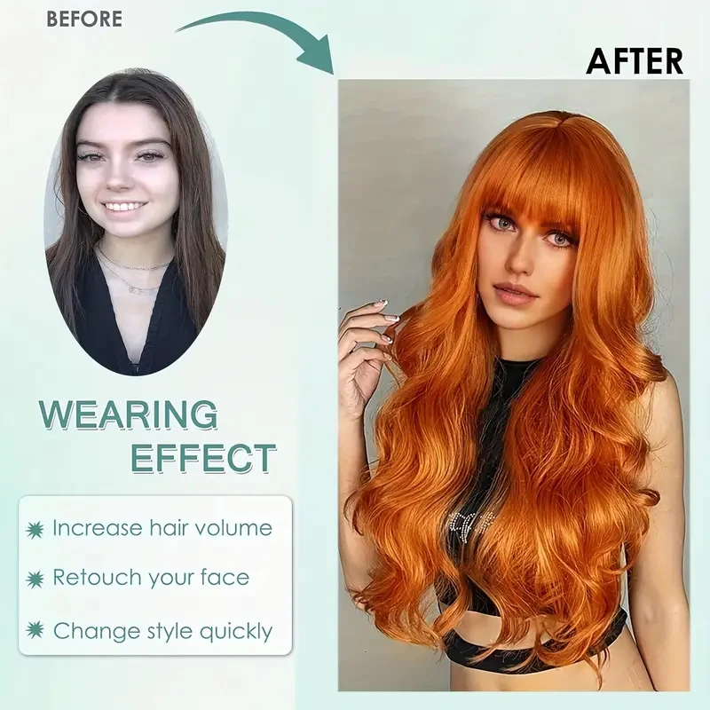 ↑Oranje grote golf 28-inch synthetische pruik, dagelijkse feestpruik, Halloween en kerstfeest, rollenspel zijden pruik op hoge temperatuur - TopDealBox