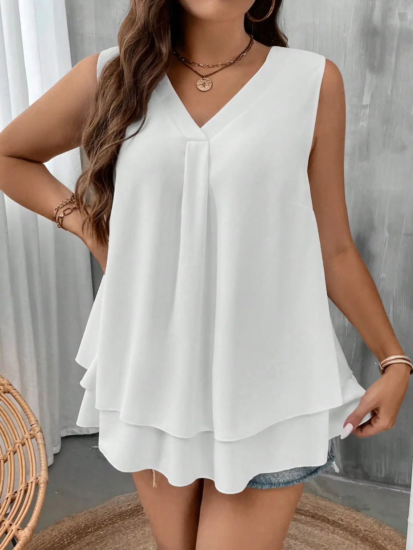 β‘Snel bekijkenPlus size Europese en Amerikaanse grensoverschrijdende lente en zomer nieuwe effen PU geplooide U-hals vest6.69 EUREUR 103.17Hotβ β β β β 4.3