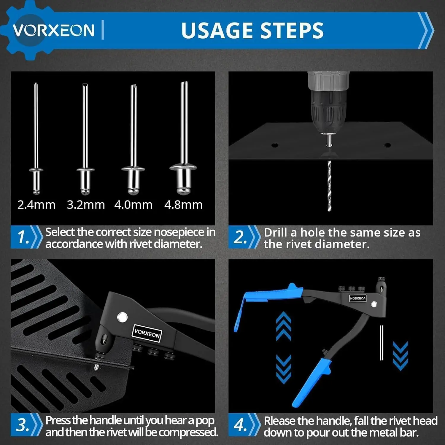 β‘Snel bekijkenHIFESON Hand Schroefdraad Klinknagel Moer Pistool 70/95/300PCS Noten Insert Handleiding Klinkhamer Rivnut Tool voor M3 M4 M5 M6 M8 M10 M12 Moer32.39 EUREUR 859.42Hotβ β β β β β 4.8