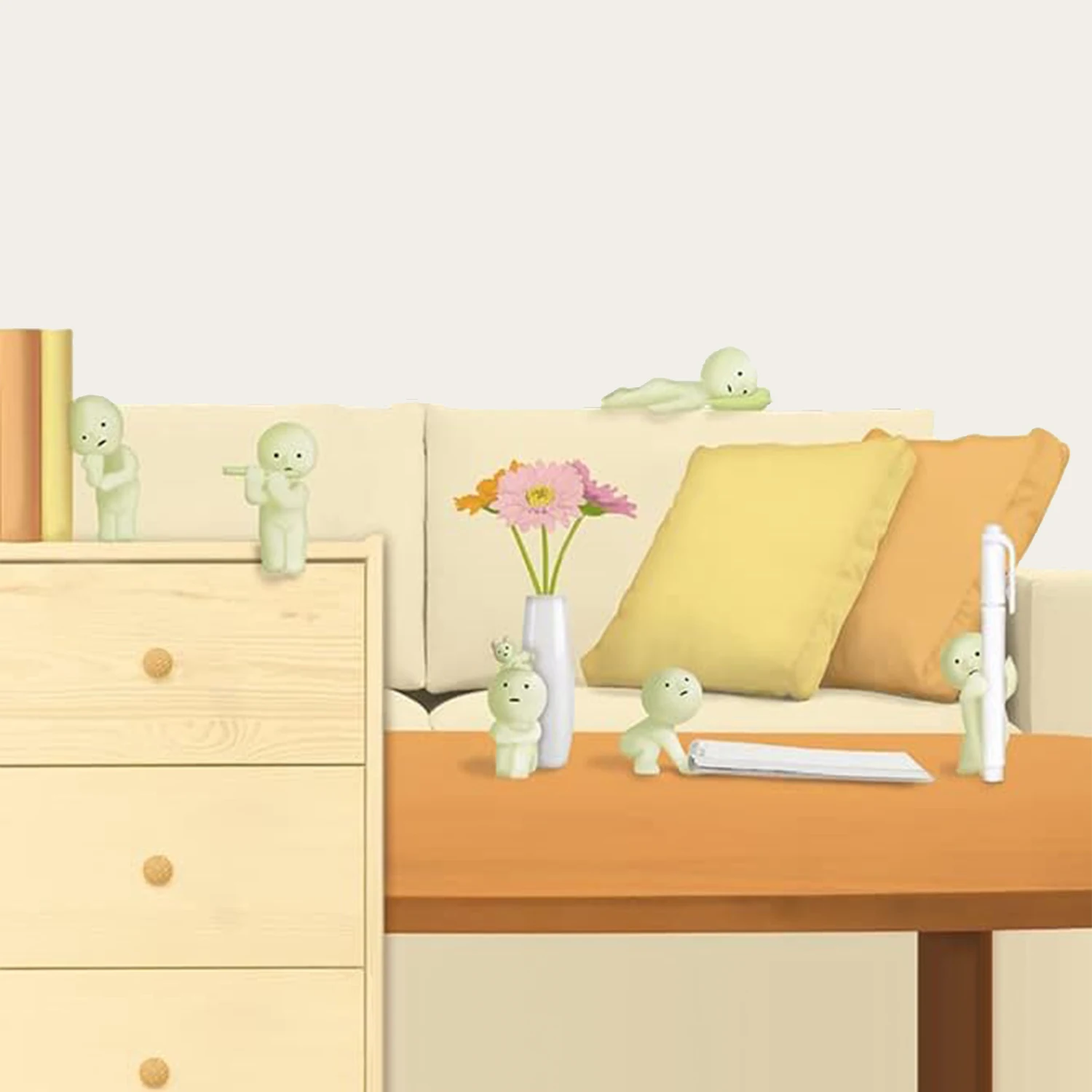 ↑Dreams Smiski Dezelfde stijl Glow in The Dark Mini Figure Set 6 soorten-Mini woonkamer auto decoratie genezing lichtgevende blinde doos - TopDealBox