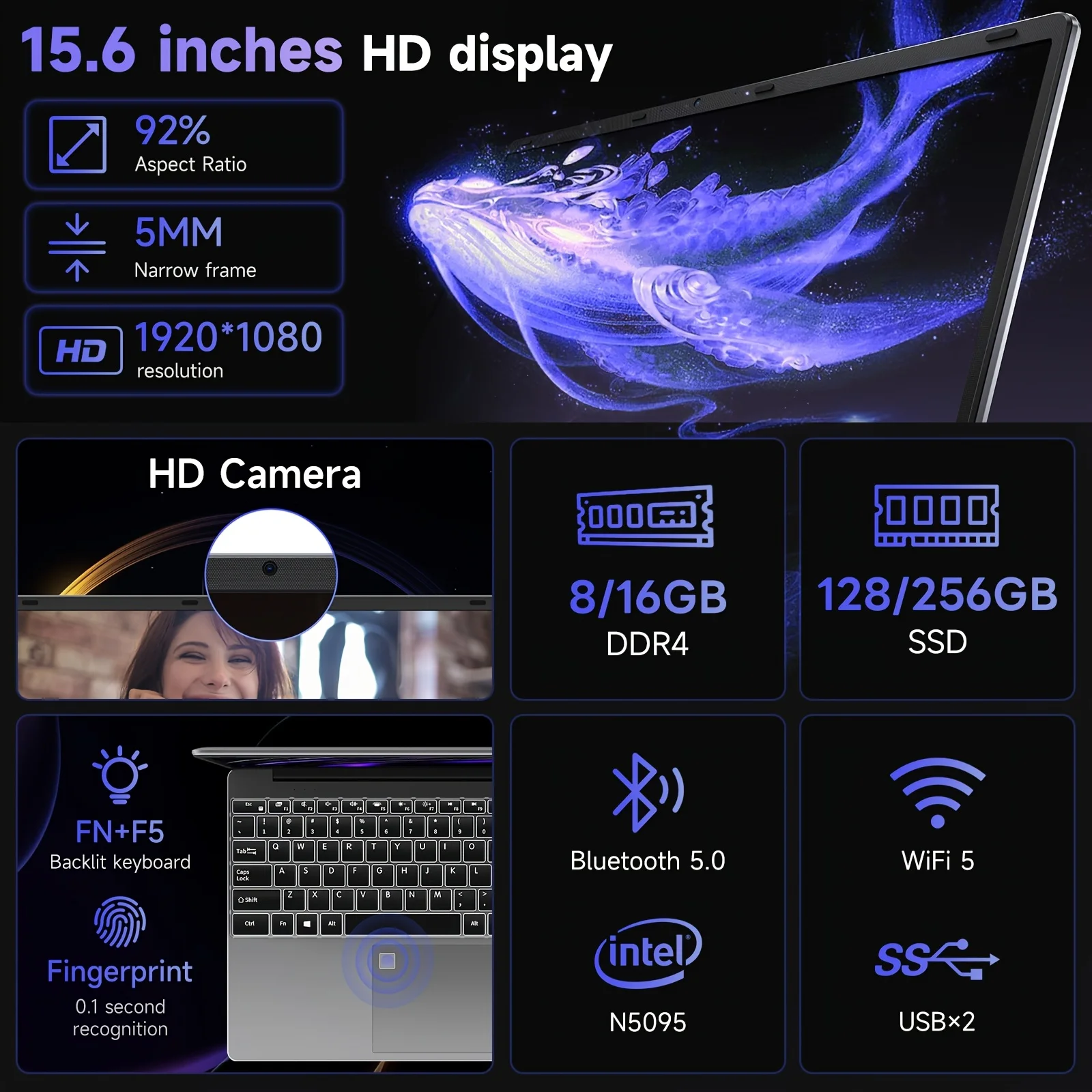 β‘Snel bekijkenTECLAST F16 Pro 15,6 inch laptop 16GB RAM 512GB SSD computers voor Intel N95 CPU 1920x1080 IPS verlicht toetsenbord Mini-HDMI WiFi 6 USB3.2 F16Pro notebook198.59 EUREUR 397.18Hotβ β β β β β 4.9
