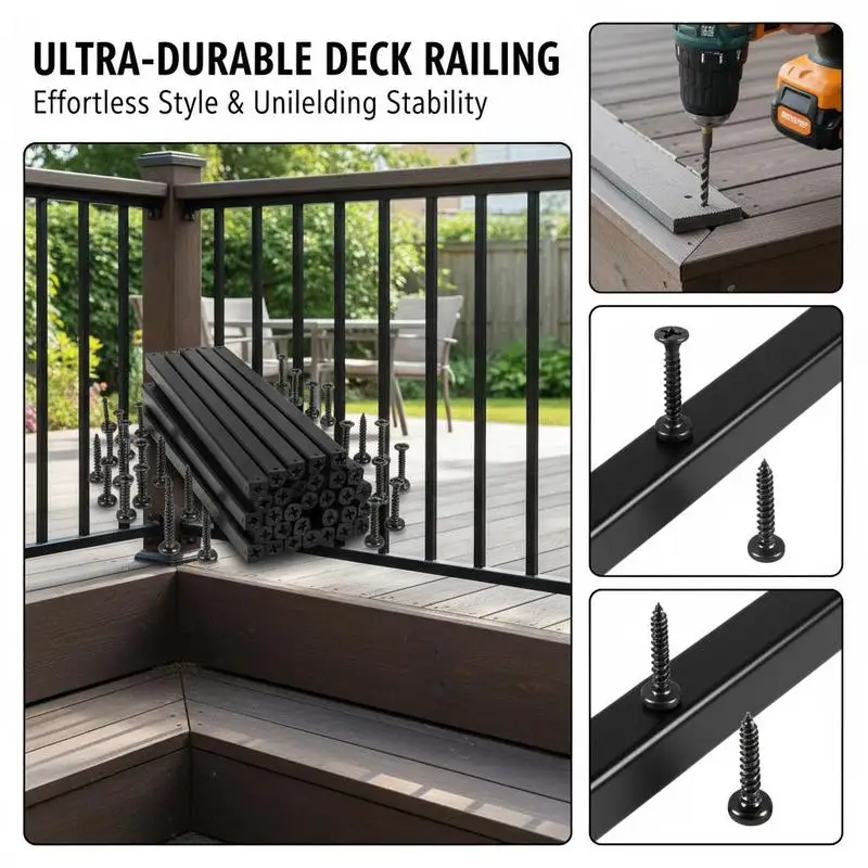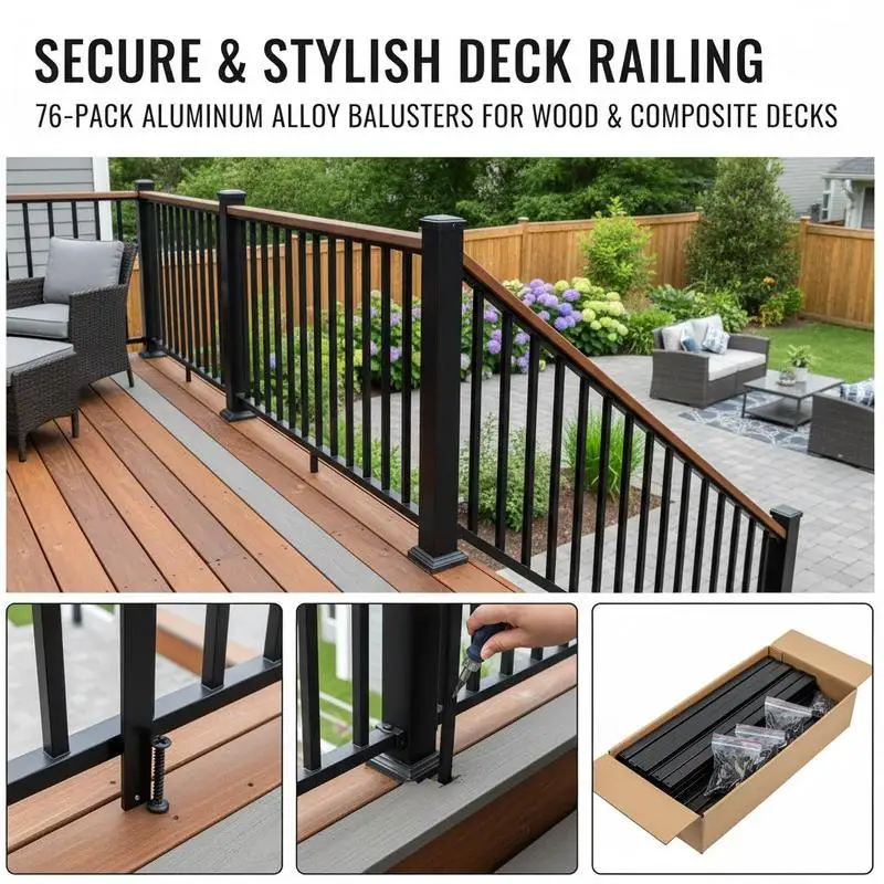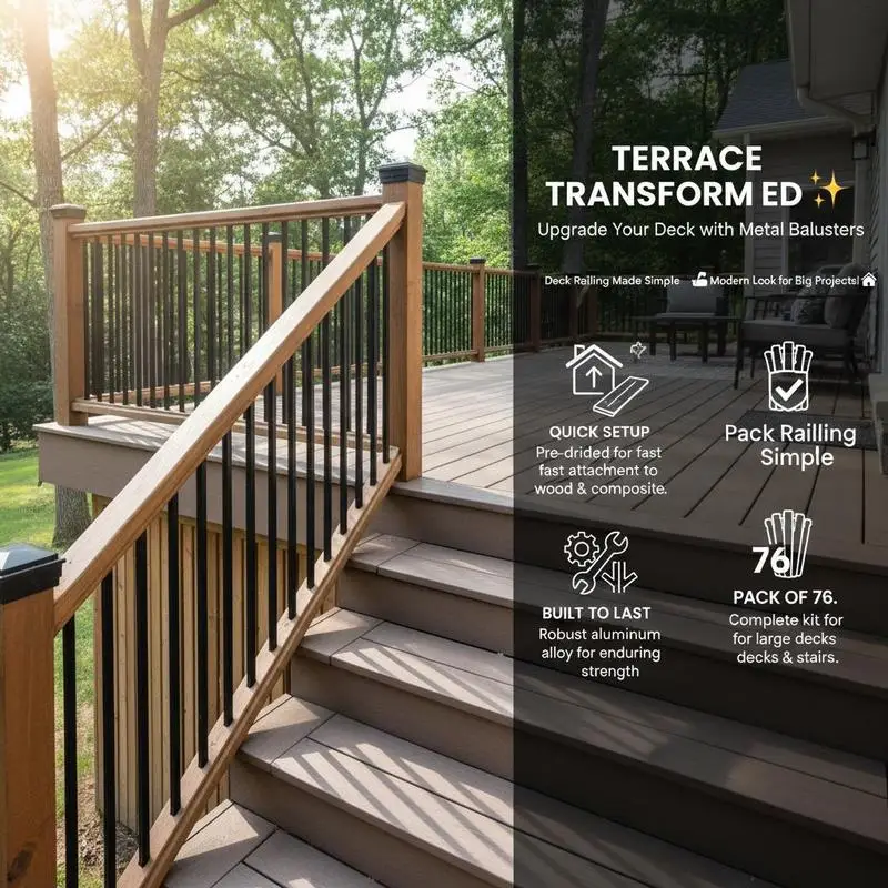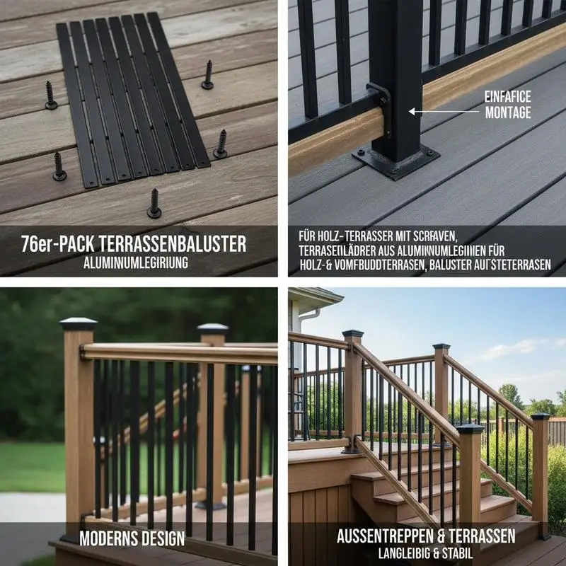 Terrasleuningen, 76-delige metalen terraspilaren, trapleuningen met schroeven, terrasleuningen van aluminiumlegering voor houten en composietterrassen, leuningen voor buitenvelden en terrassen - TopDealBox
