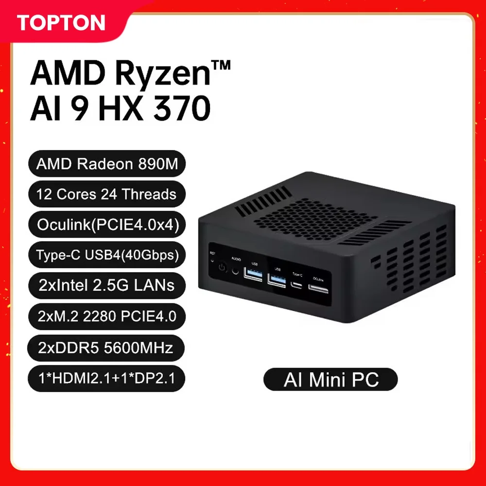 β‘Snel bekijkenTopton Gaming Mini PC Oculink AMD Ryzen AI 9 HX370 365 7 PRO 360 USB4 2 * DDR5 2xPCIe4 2 * 2.5G LAN Mini Computer Windows 11 WiFi6585.39 EUREUR 887.96Hotβ β β β β 5.0