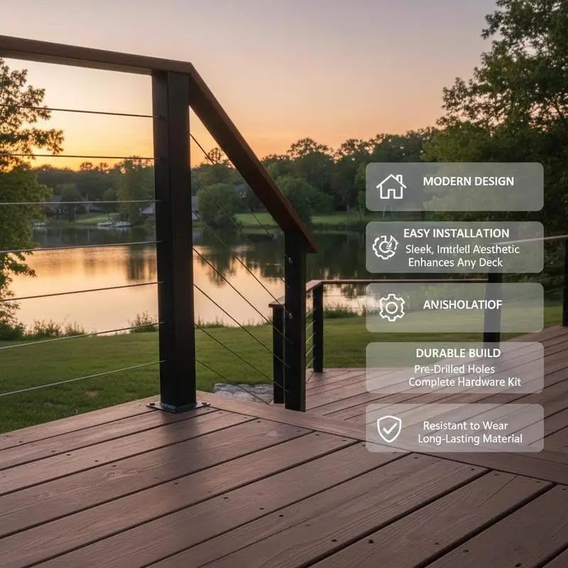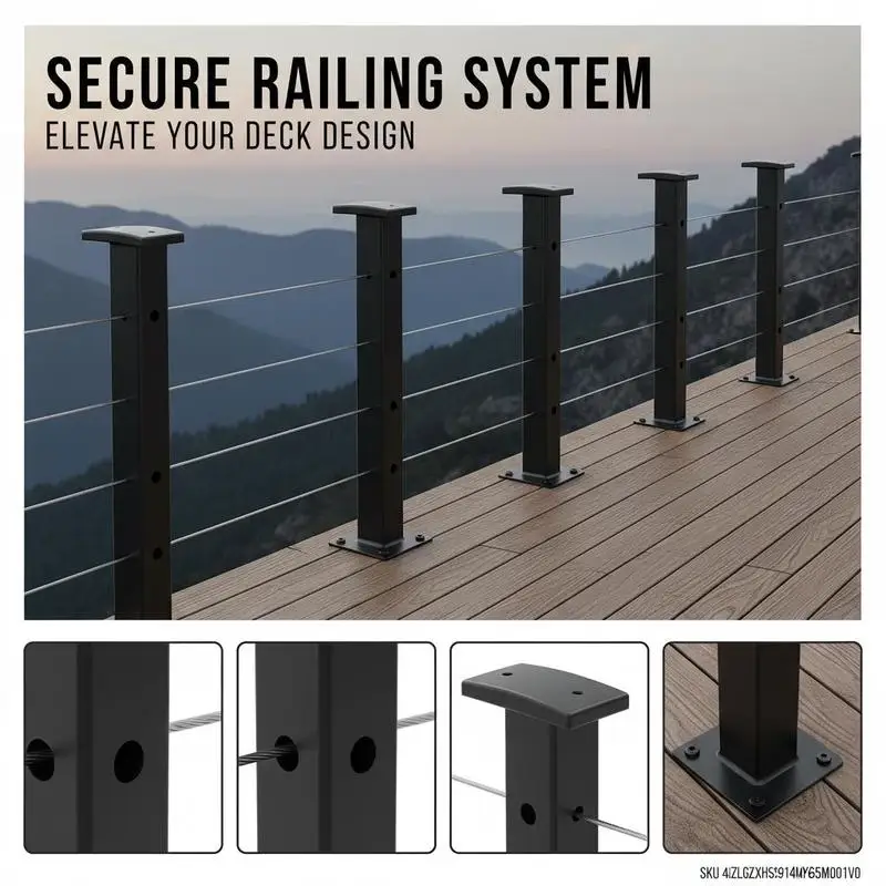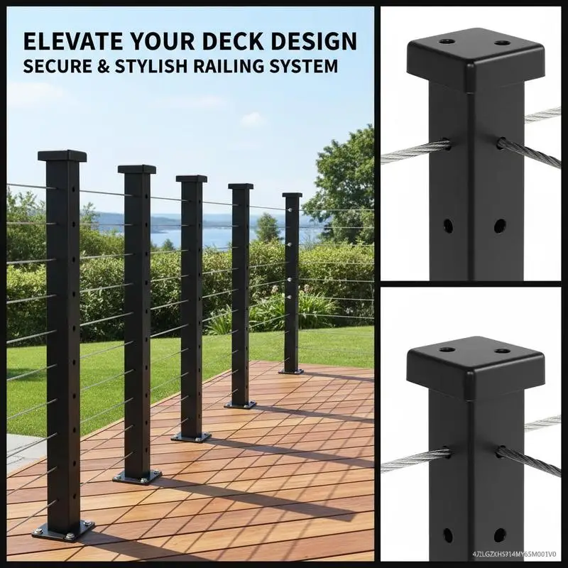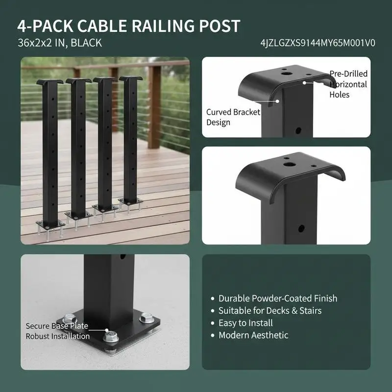 Trapleuning 36x2x2 In For Pack Patio Porch, voorgevormd Horizontaal gat Verstelbare armband Metalen pilaar Zwart 4-pack - TopDealBox