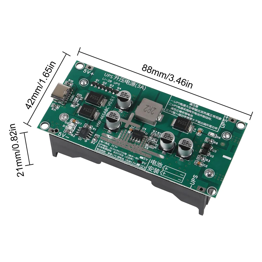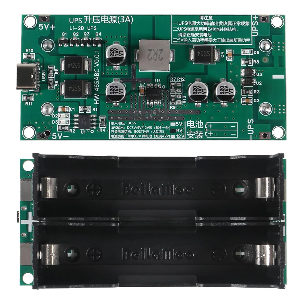 ↑Type-C 15 W 3A 5 V 9 V 12 V Snel Opladen UPS Voeding 18650 Lithium batterij Oplader Module DC-DC Step Up Booster Converter - TopDealBox