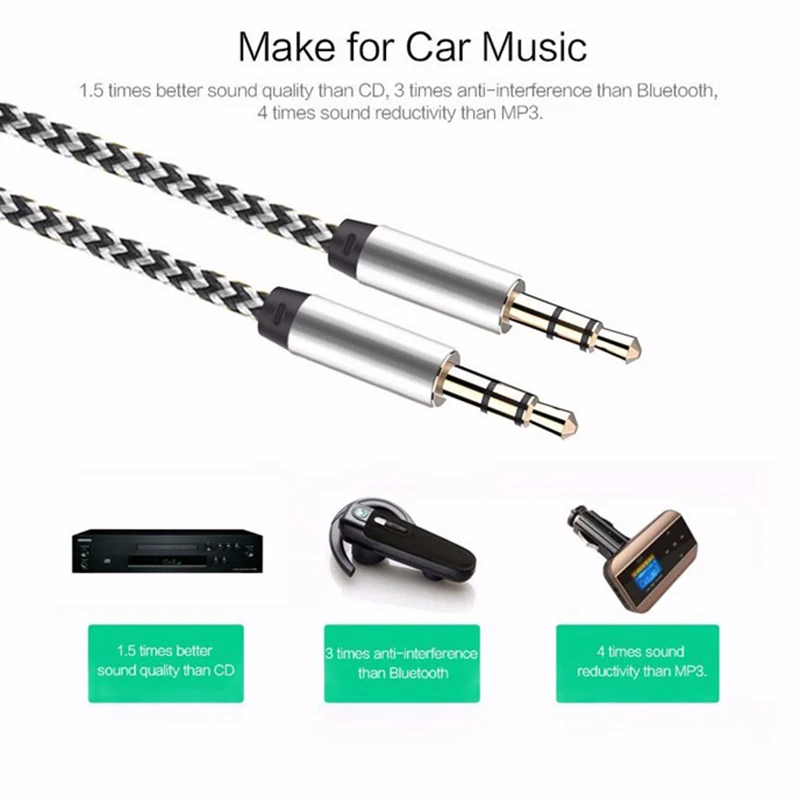 ↑VAORLO AUX Audio 3,5 mm Jack Nylon Kabel 3,5 mm naar 3,5 mm Aux-draad Lijn Man op Man Auto Hoofdtelefoon Luidspreker Aux-snoer Voor TV Tablet - TopDealBox