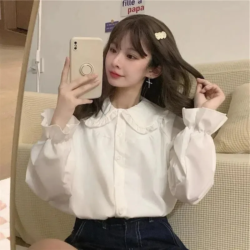 ↑Vintage Dames Wit Overhemd Preppy Stijl Mode Elegante Vrouwelijke Lange Mouw Blouse Y2K Zoete Kawaii All Match Shirts - TopDealBox