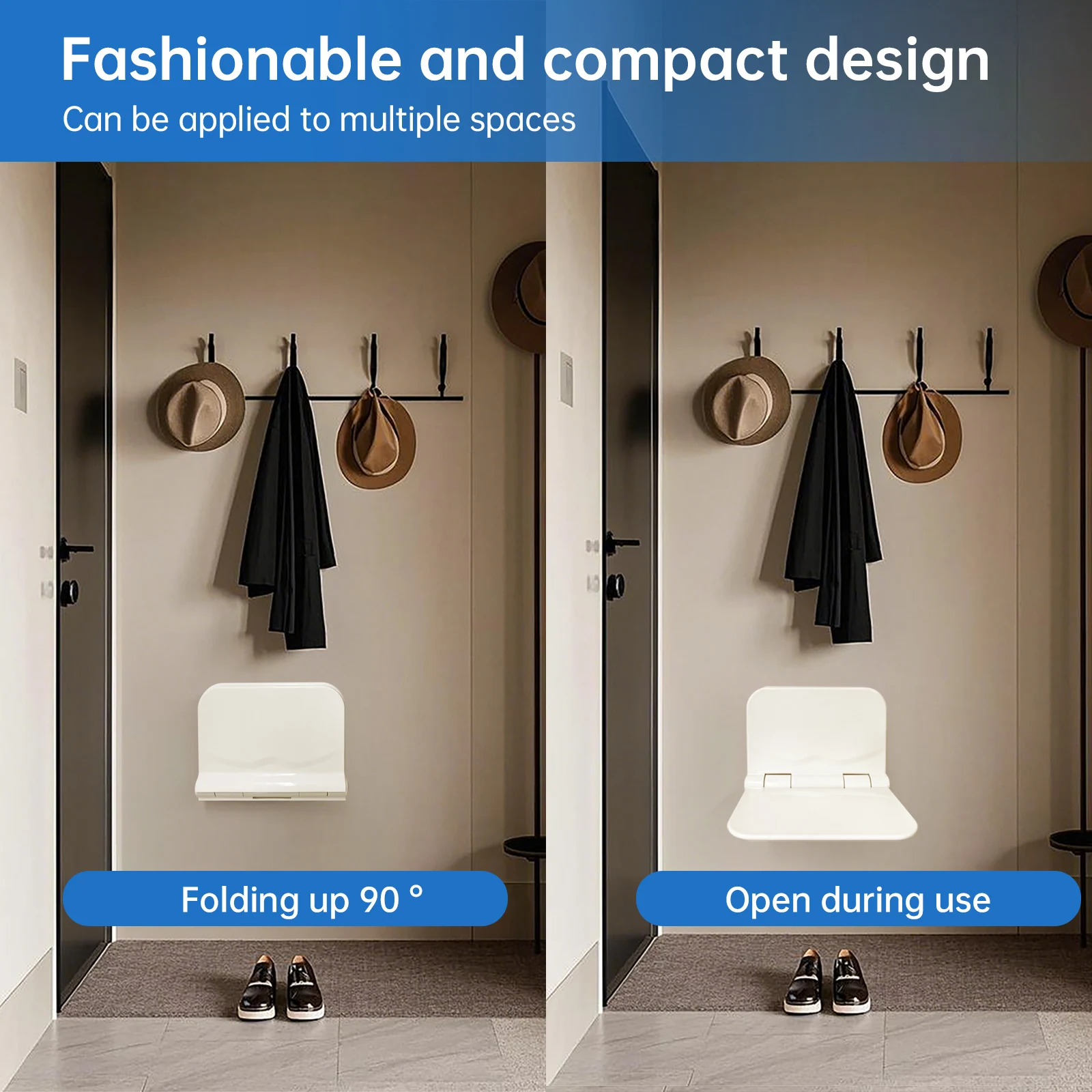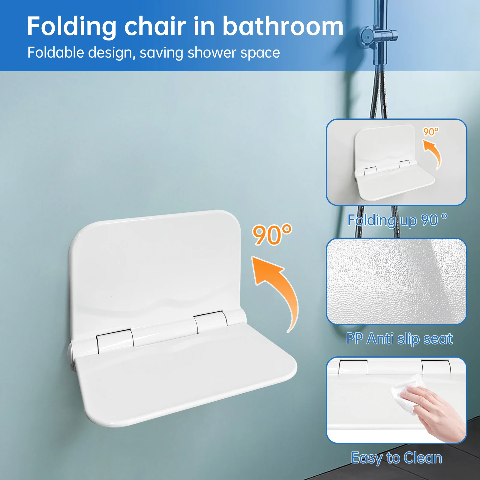 Wandhangende onzichtbare badstoel Slaapkamer Hotel Woonkamer Ziekenhuis Gebruik Badkamer Opvouwbare douchekruk voor ouderen met een handicap - TopDealBox