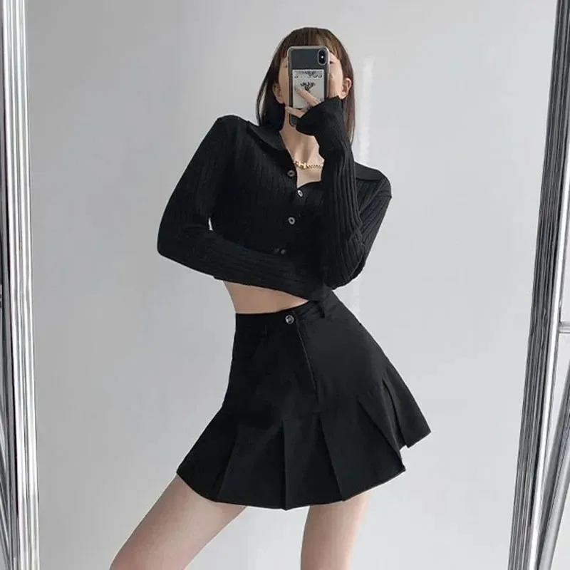 ↑Y2K Vintage Hoge Taille Plooirok Vrouwen College Stijl Uniformen Veiligheidsbroek Mini Rokken Vrouw Koreaanse Straat Slanke A-lijn Rok - TopDealBox