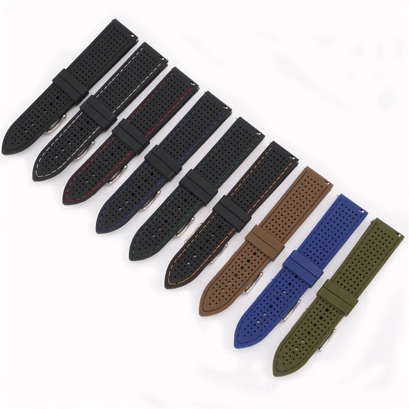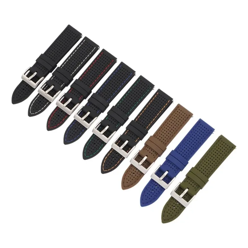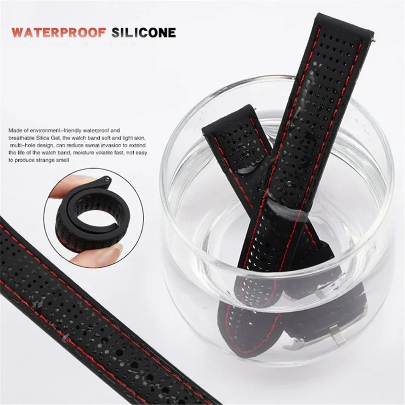 Zachte siliconen rubberen horlogeband 20 mm 22 mm 24 mm Heren Dames Sport Waterdicht Ademend Polsbandje Quick Release-armband - TopDealBox