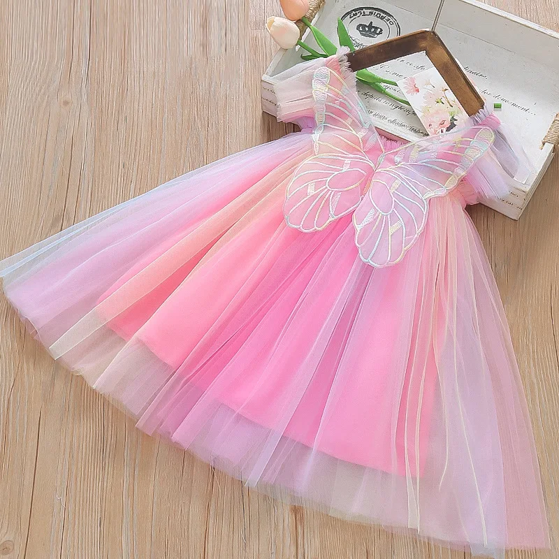 ↑Zomer Nieuwe Kleurrijke Chiffon Baby Meisje Prinses Jurk, Schattige Vlinder Vleugel Kinderkleding - TopDealBox