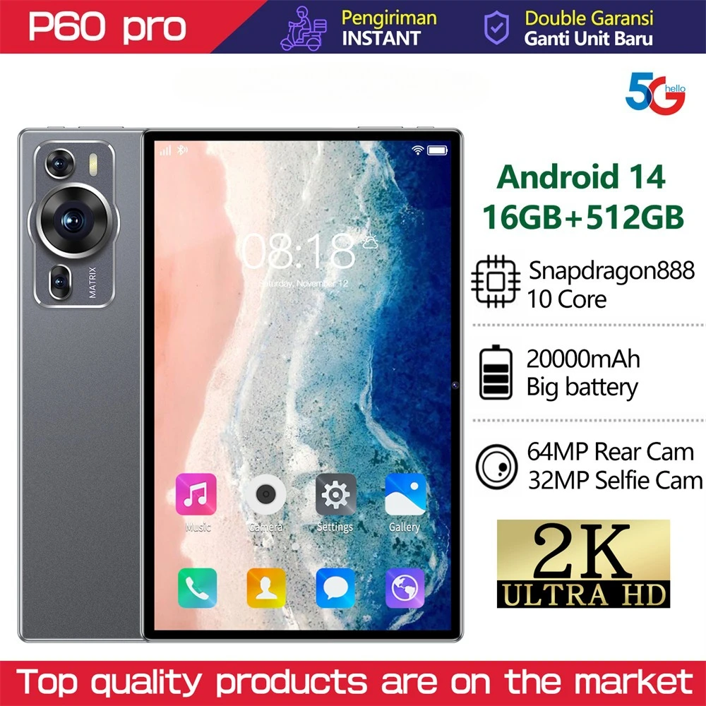 ♡Snel bekijken2025 NIEUWE Originele P60PRO Tabletten 10 Inch 20000 mAh HD Tab Android 14 16 GB + 1 TB Global Versie 5G Dual SIM WiFi GPS Tablet PC84.80 EUREUR 121.14Hot★★★★★★4.8